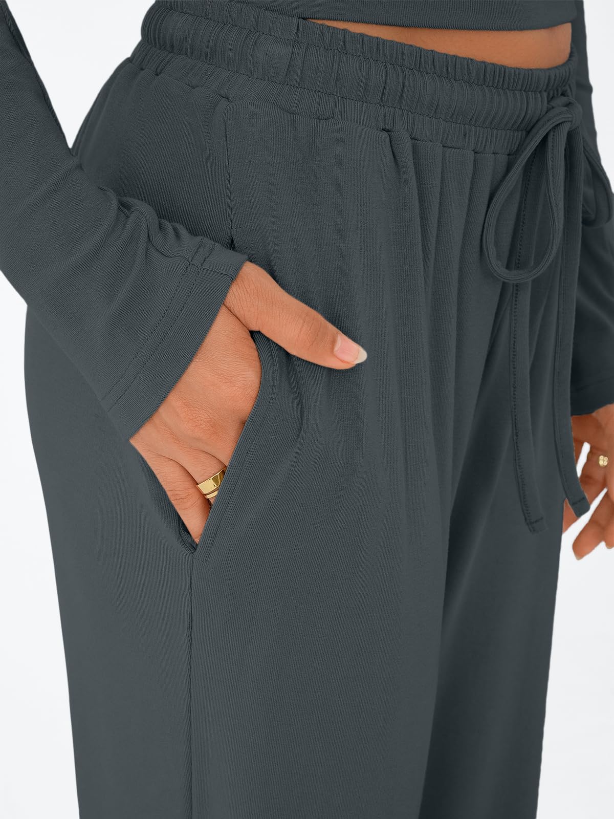 All-Day Comfort in Effortless Style—Crafted from soft smooth fabric—92% Rayon and 8% Spandex—this long-sleeve set offers comfort and soft stretch for all-day wear. Breathable and temperature-adaptable, it provides a consistently comfortable micro-climate whether you're lounging at home or out and about.
