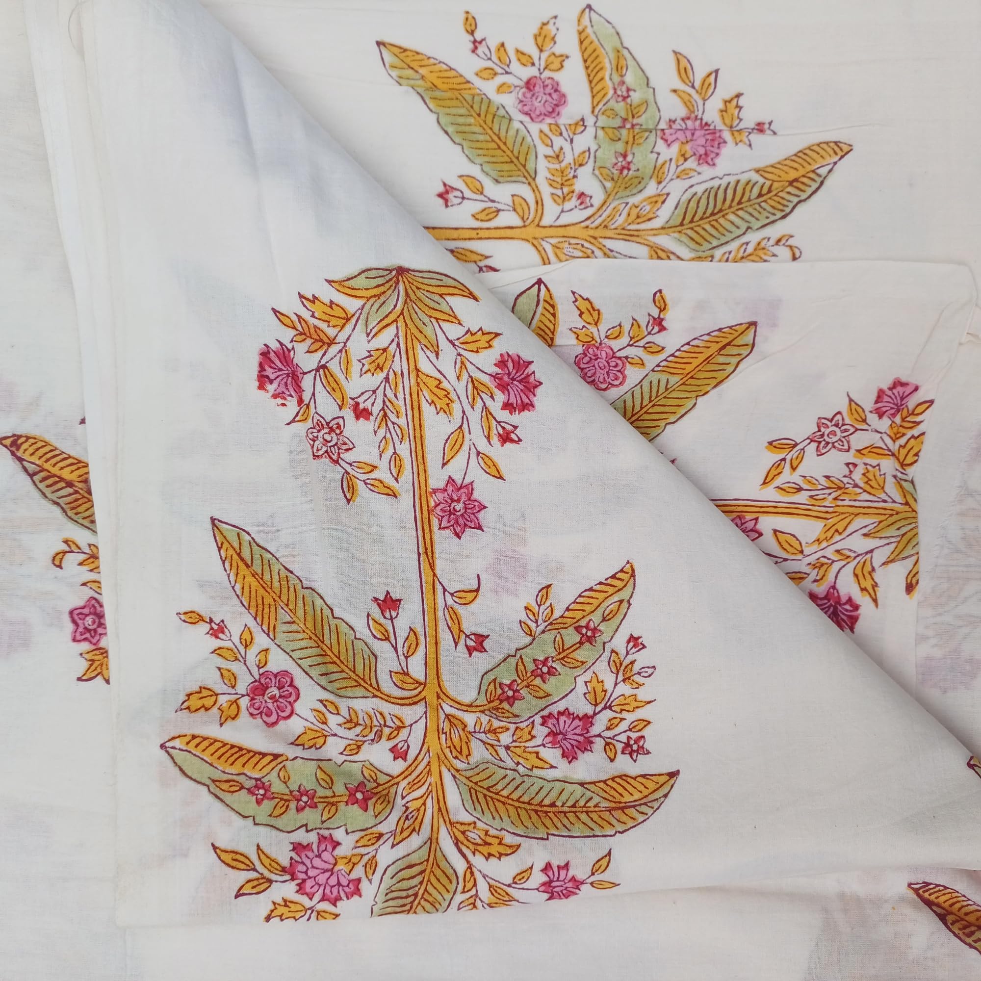 FABRIC WIDTH: 44" And LENGTH: 1 Yards. , Color: Multicolored . 100% Soft Cotton medium weight, Indian Wood Hand block fabric.