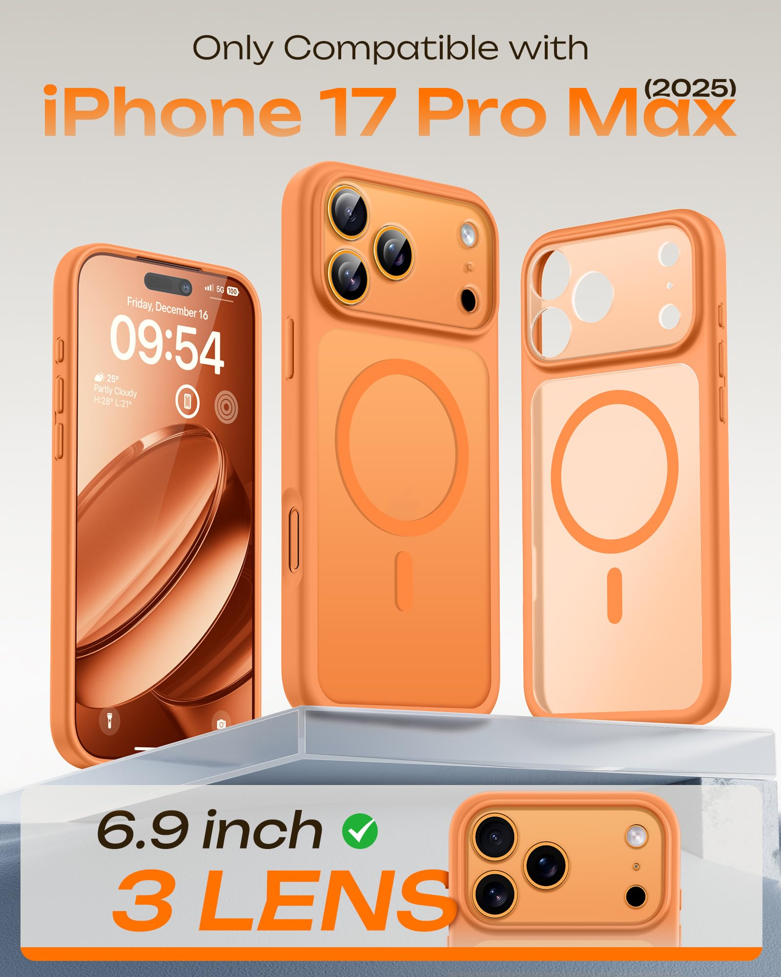 Embedded Magnetic Ring:Upgraded for iPhone 17 Pro Max Magnetic Case. Built-in magnetic ring never falls off. 18N ultra-strong power, perfect for all your Mag accessories. It holds up well on your Mag car mount, even over strong bumps