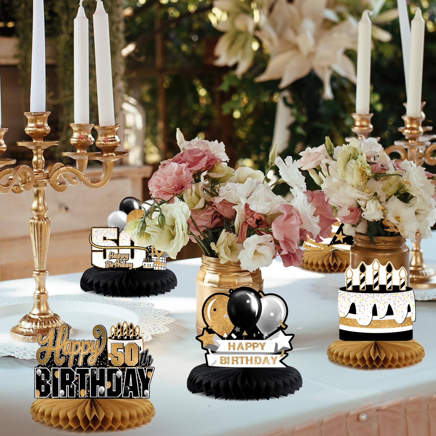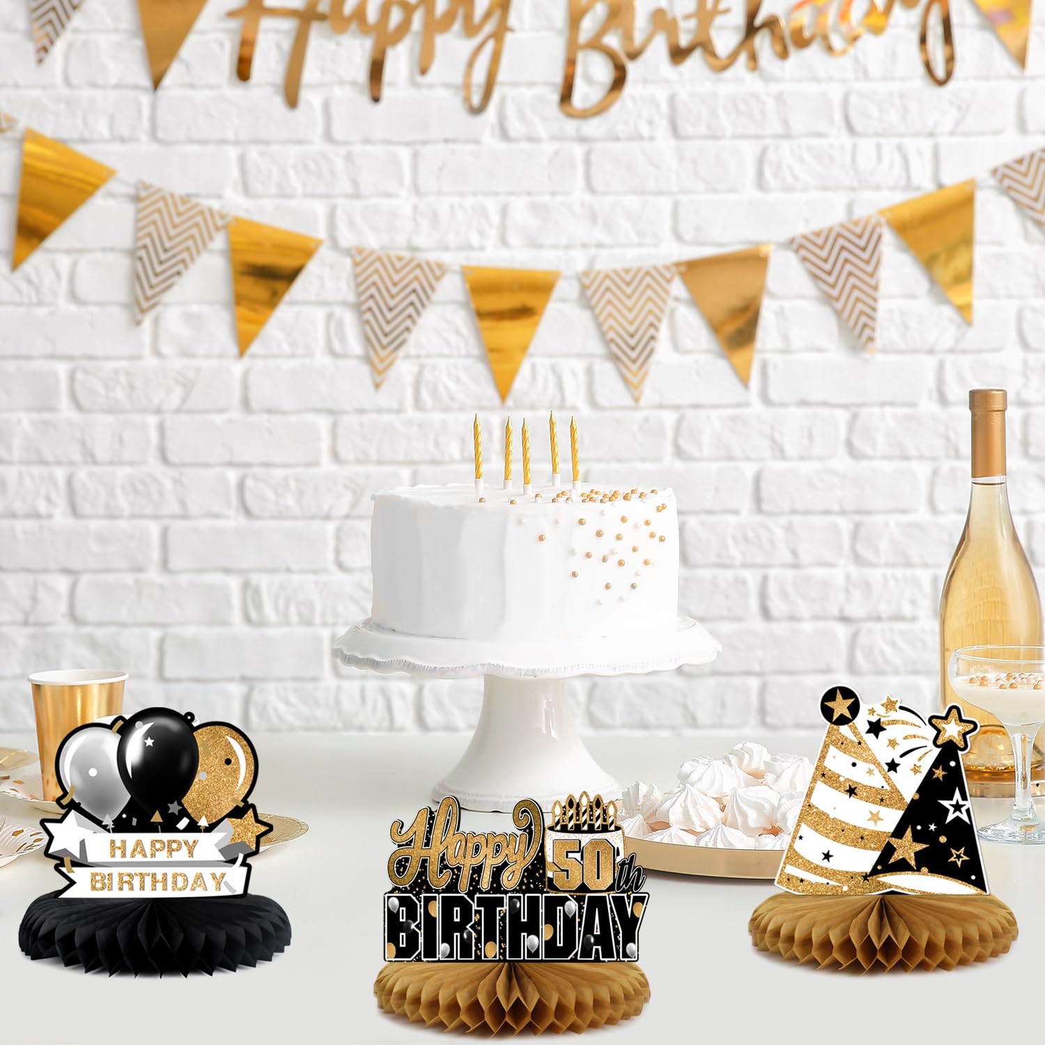 [WHAT YOU GET] Comes with 8pcs "50th Birthday" Gold cake star balloon table honeycomb ,made of thick paper and great details sign.Take pictures will very pretty !