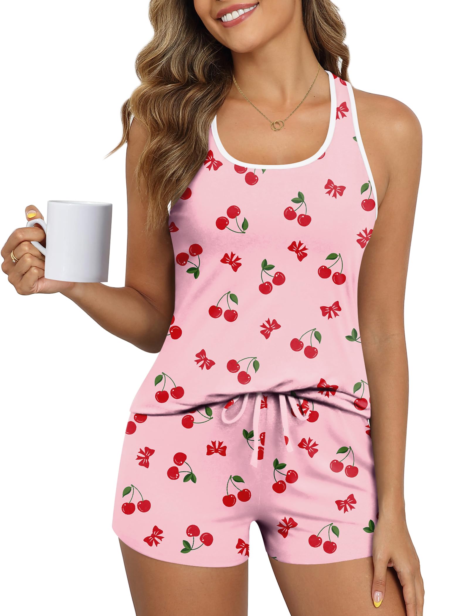 【Cute Print Pj】Cami and shorts lingerie set has a variety of special patterns. Cow print pajamas, butterfly pajamas, cheetah print shorts, heart print pajama set, cherry pjs for women, bow pj set, butterfly pajamas ect
