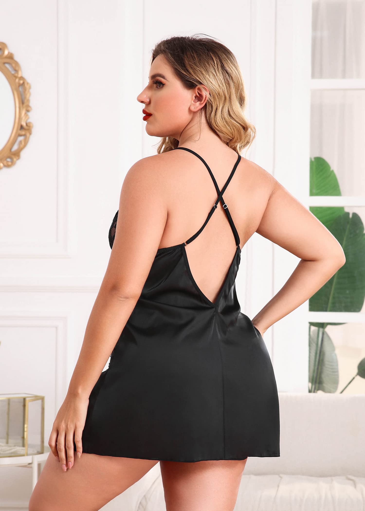 Avidlove Plus Size Babydoll For Women Sexy Satin Nightgowns For Women Plus Size Black Medium