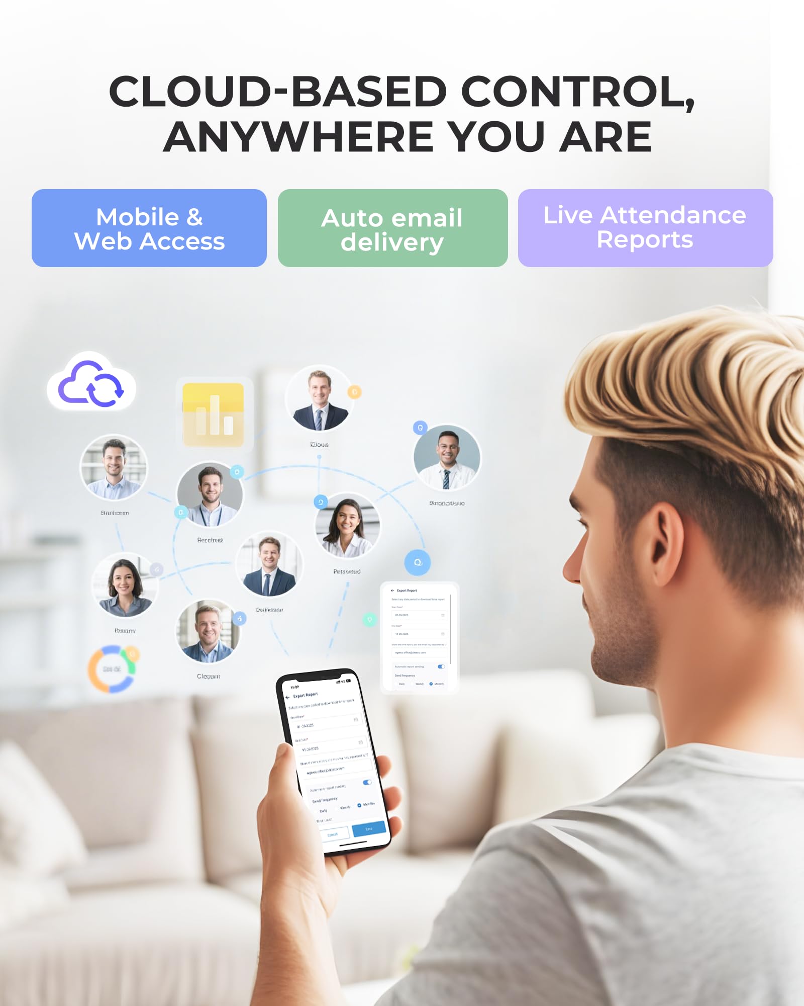 Easy Cloud Management: The Cloud-based time clock, powered by Upgrade NGTeco Office software and app, delivers real-time punch data from any location. Enjoy precise hour tracking and instant report generation—accessible through any web browser.