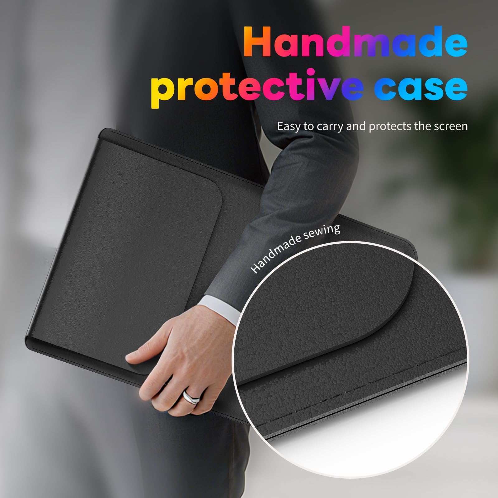 【Ultra-Portable Wireless Monitor】Slim (0.3") and lightweight (1.3 lbs), this wireless monitor fits easily into any bag. It includes a waterproof leather case for extra protection, making it ideal for on-the-go use in coffee shops, airports, or remote offices. A perfect compact screen for mobile professionals.