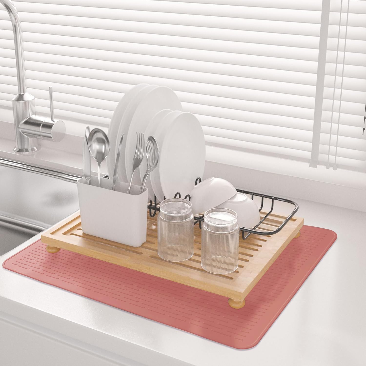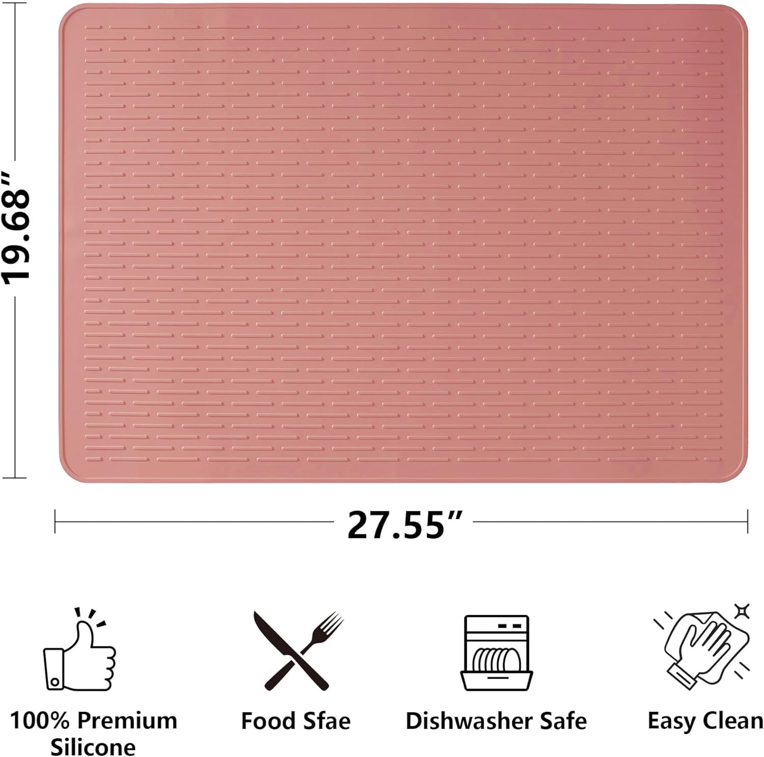 Kitchen Drying Mat:The unique design of wide raised line ridges increases air circulation, improves ventilation, and catches drips from dishes, glasses, fruits, and vegetables. The high edges and waterproof bottom keep the countertop dry and clean, making it an ideal kitchen drying mat.