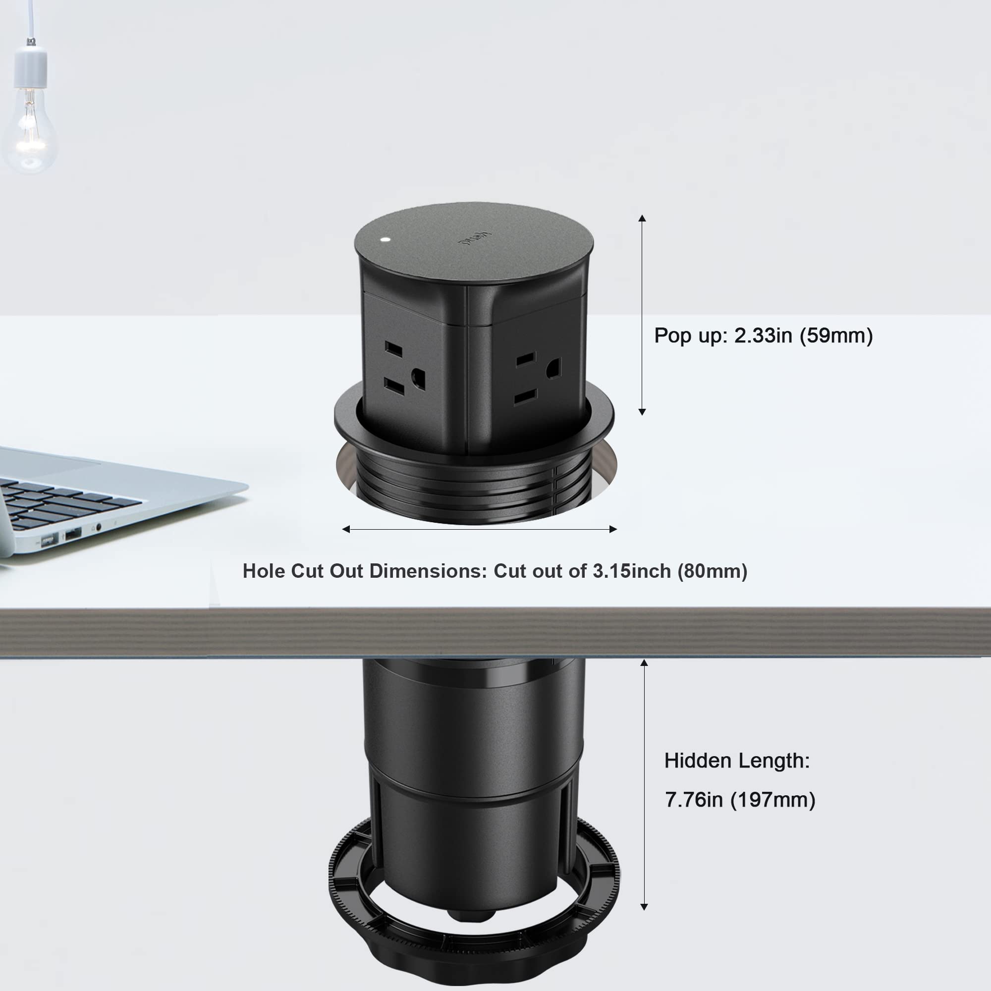 Countertop Pop up Outlet: Fully automatic retractable desktop design,this unique grommet power outlet get rid of hefty adapters and messy plugs.