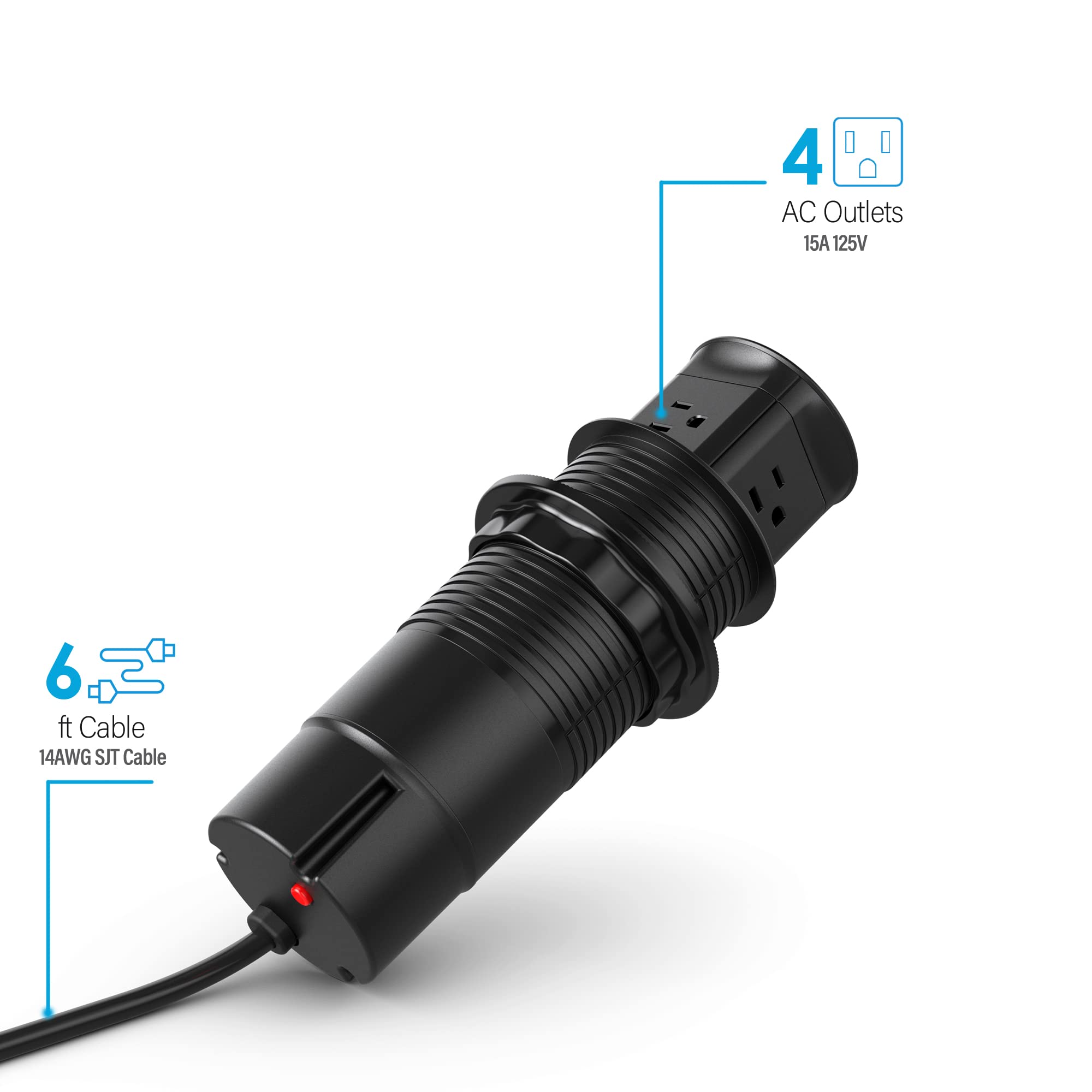Pop up Table Power Outlet:4 Grounded 3 Prong AC Outlet,provide more options when you need more than one plug.with 6ft Extension Cord.