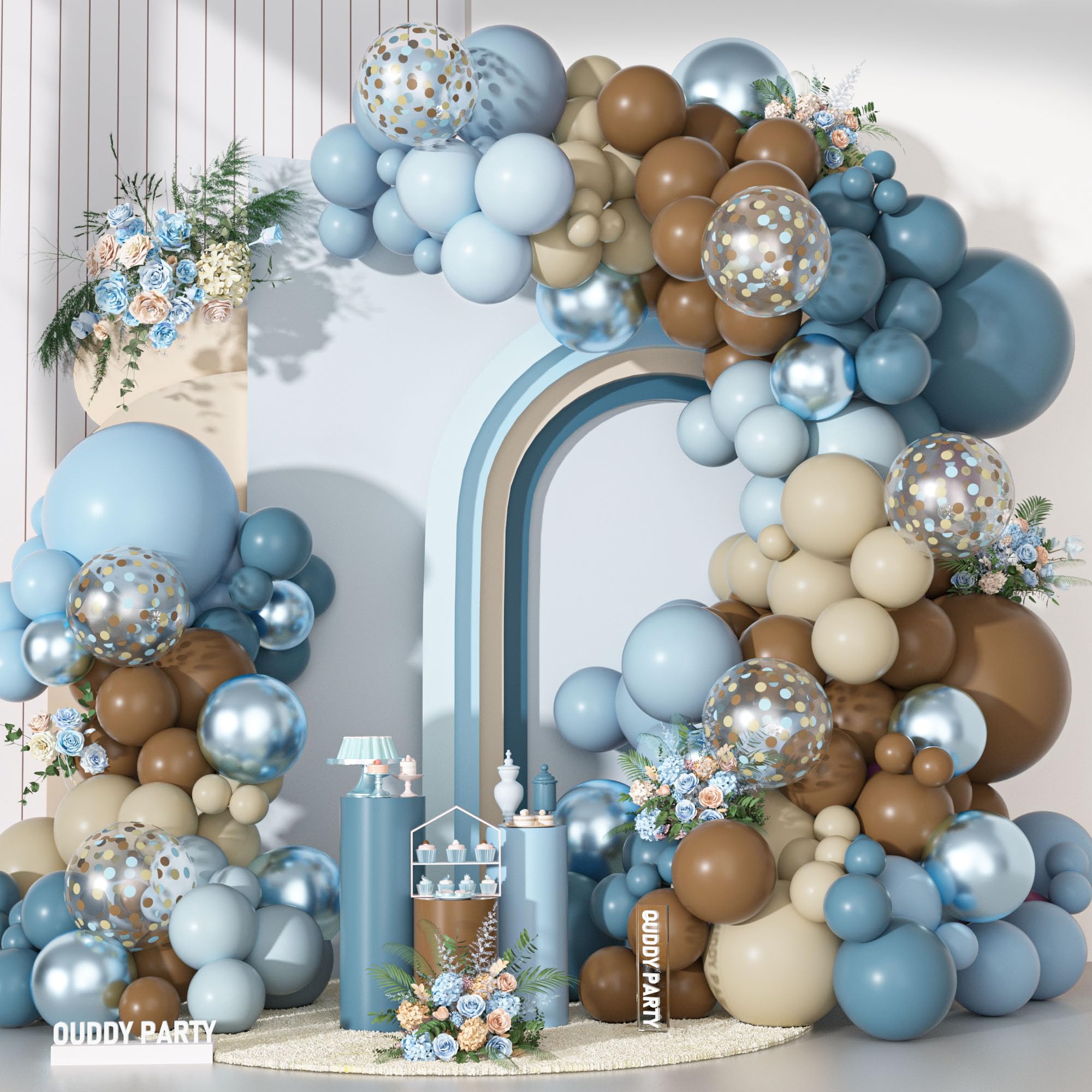 Quality Latex Balloons: Crafted from premium latex, the blue and brown balloon arch kit is long-lasting, ensuring they stay inflated throughout your event; Our dusty blue balloon arch kit is non-toxic and suitable for indoor and outdoor use