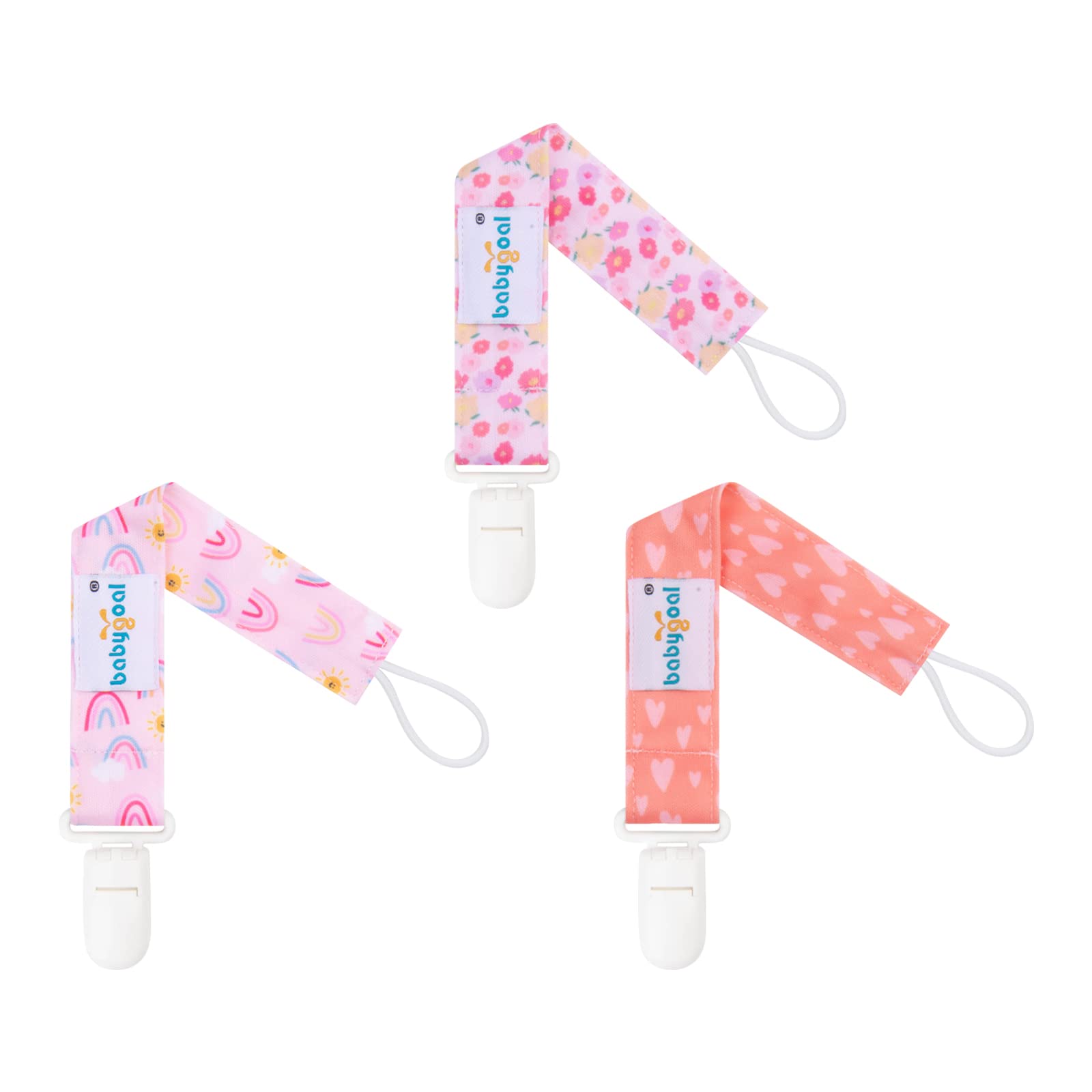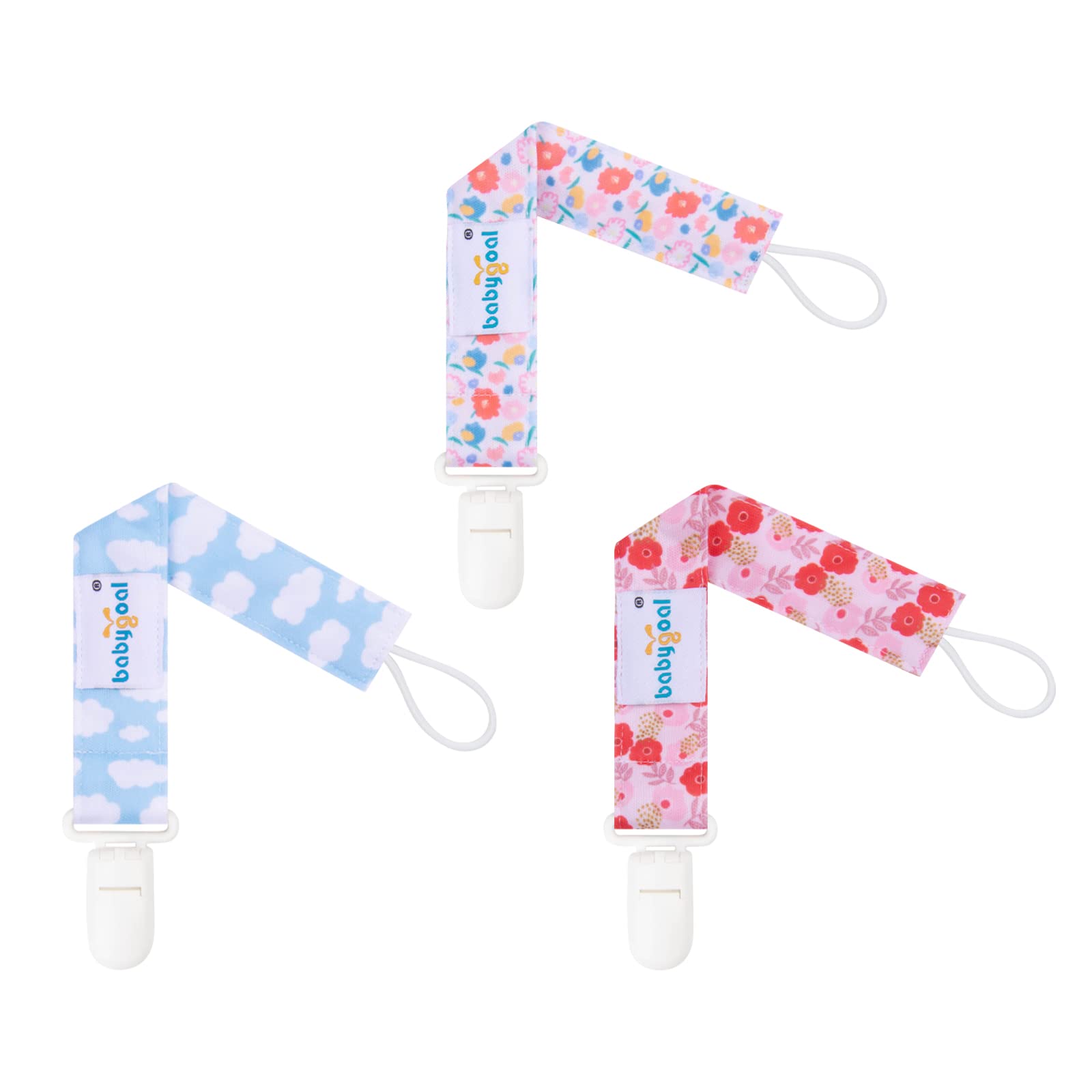 Safety: The stylish pacifier leash are made of polyester fabric, and they are washable, durable and soft. Clips with plastic teeth hold tight and will hardly damage baby's clothes or discomfort the baby, but please do not let your baby chew on the clips to avoid a choking hazard.They are BPA Free, Phthalate Free, Latex Free, Lead Free, suitable for babies all ages.