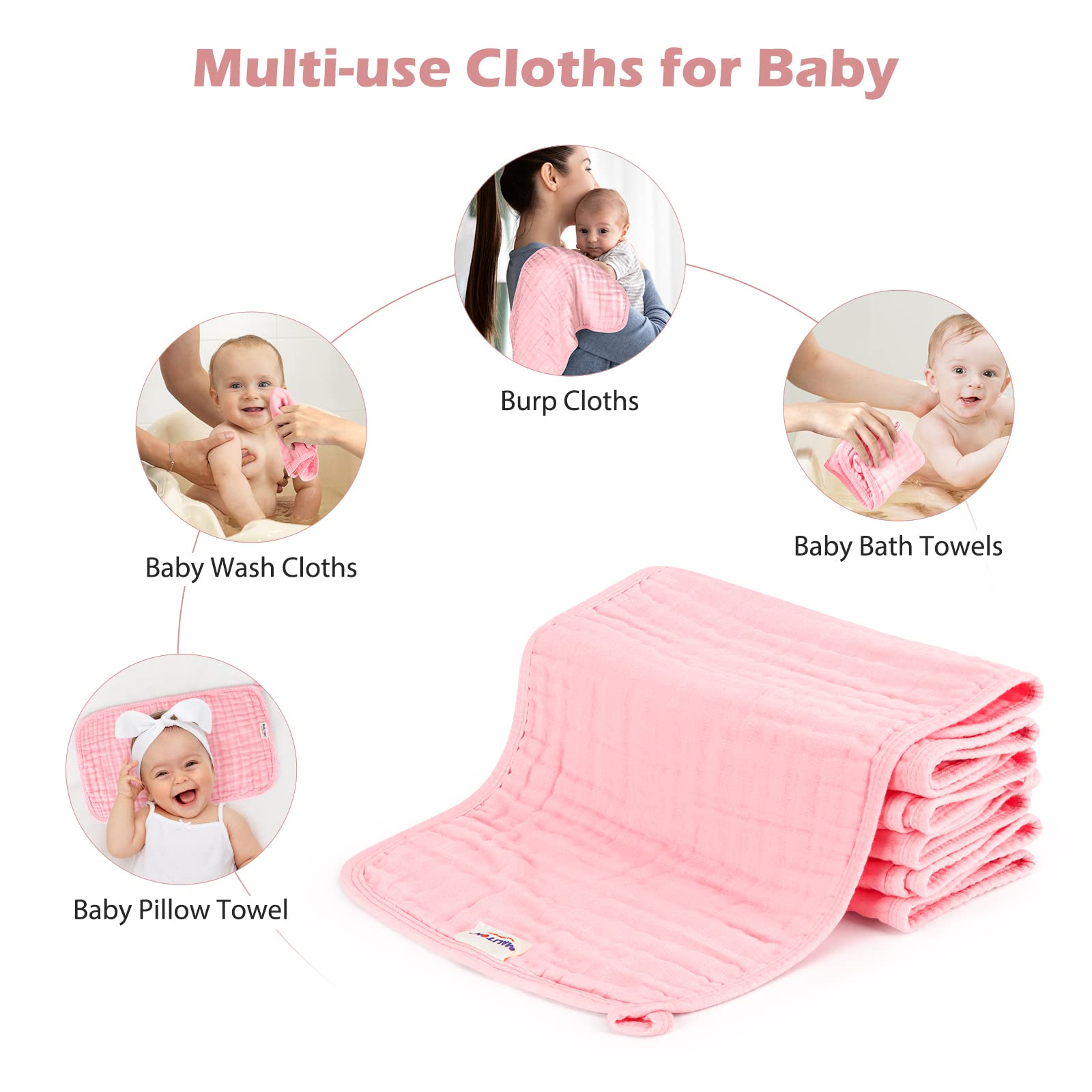 Multi-purpose for Baby and Pack Information-Maliton burp cloths sets contain 6 pack 20" x 10" inches muslin large burp rags and 1 pack 10" x 10" inches baby washcloths. Having a burp cloth on hand during feeds is a newborn parent must haves, and it can be used to wipe baby's milk, spit-up, mucus and drool.