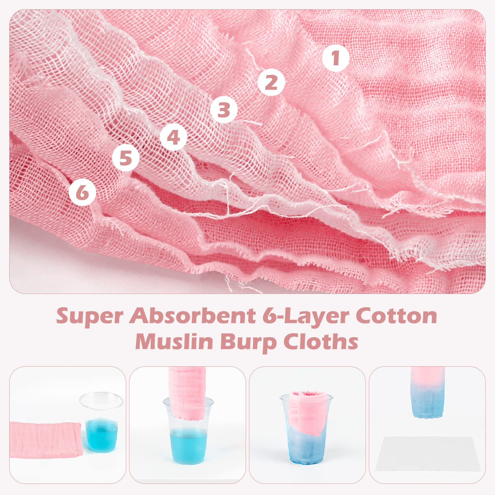 Absorbency-Designed with 6 Layers cotton muslin, burp cloths catch most of the liquid quickly,this baby spit up rags help new parents take the brunt of spit-up and you can use these to wipe milk dribbles and drool.