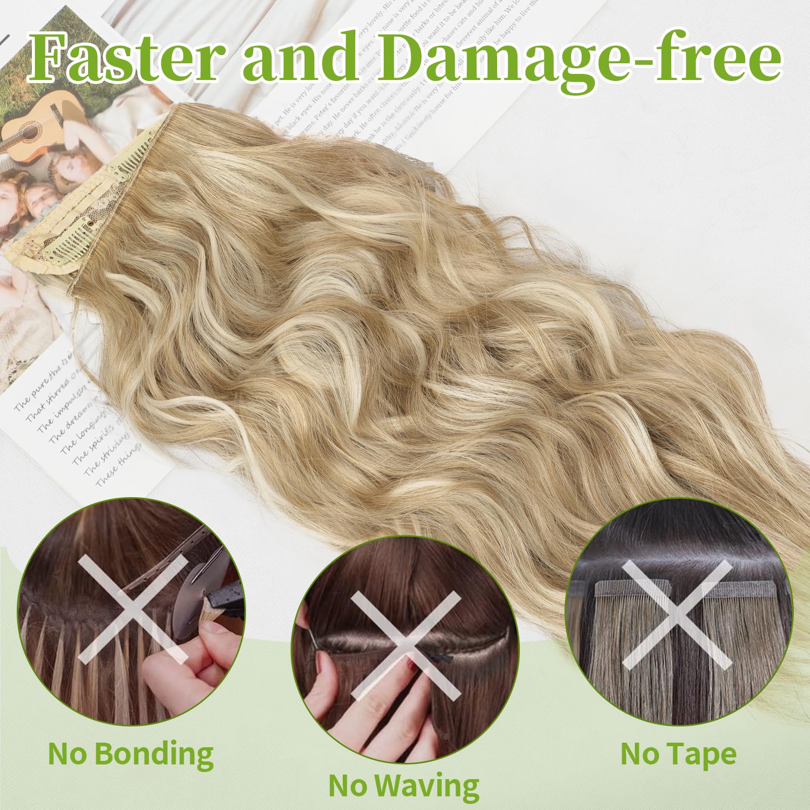 Different ways of wearing: 1. Position the wire hair extensions on your head like a hairdband, secure them with 4 clips, and hide the wires with your own hair.2. Only use invisible wires, suitable for easy hair loss and sensitive to bobby pins customers. 3. Only use 4 hair clips, suitable for customers with soft and sparse hair on the top of the head.It can meet various wearing situations.