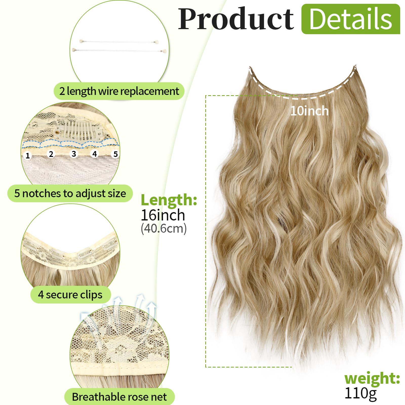 Specifications: Each package includes a hair piece containing 4 clips; 2 different lengths of fishing wire for replacement; You can adjust the suitable size according to your head circumference by putting the hook into the corresponding wire notches. The upgraded wire is thicker and more flexible, not easy to break and will not cause any stress to the scalp.