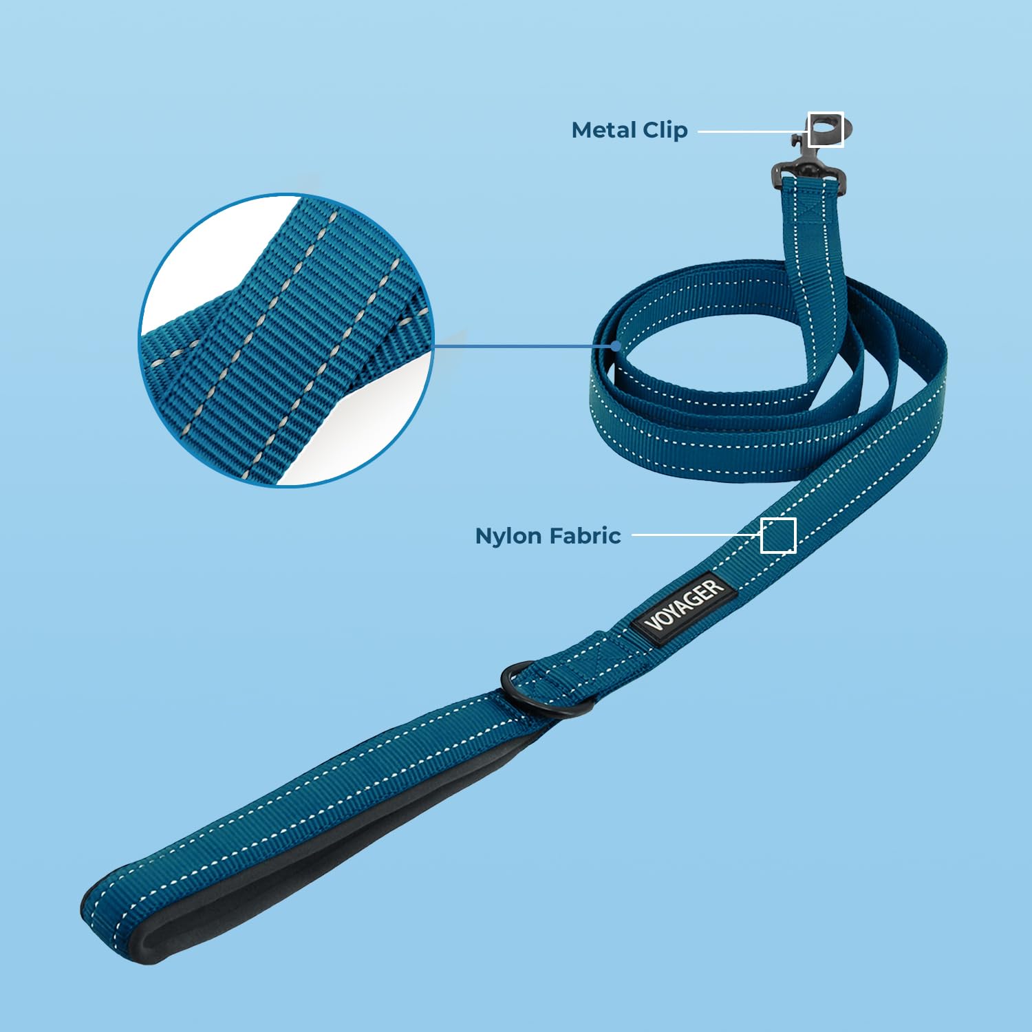 Premium cushioned materials including neoprene and nylon with reflective stitching to ensure safety and security on every walk