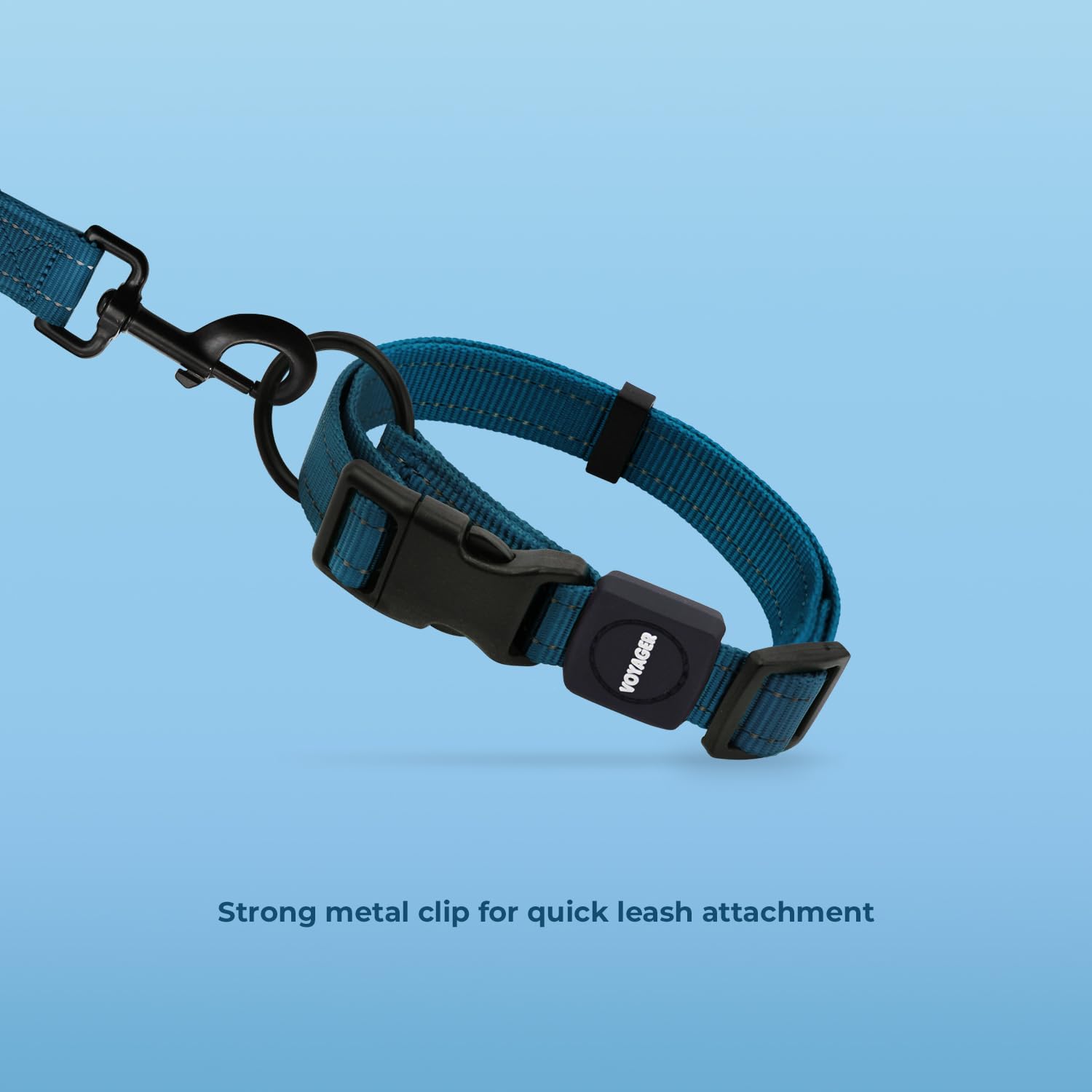 Must-have dog safety features including a security ring to prevent escaping from a loose collar, a swivel hook to avoid tangling, and a quick release buckle for ease of use