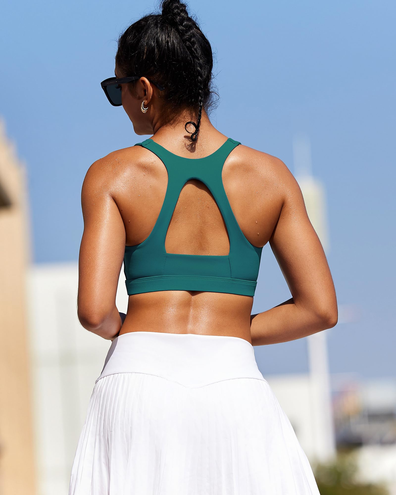 HIGH SUPPORT DESIGN:Running girl sports bras for women detailing gives the V-neck womens sports bras its signature style.But it doesn't just look good,it's hard working.And the sports bra for women wrapped in durably soft performance stretch fabric keep you comfy and supported.The cotton-like meterial,soft and comfortable to wear.High support sports bras for women let you twist with ease,High impact design offers a extra back support,fashionable and stylish,Stretch Fit Workout Tops for Women.