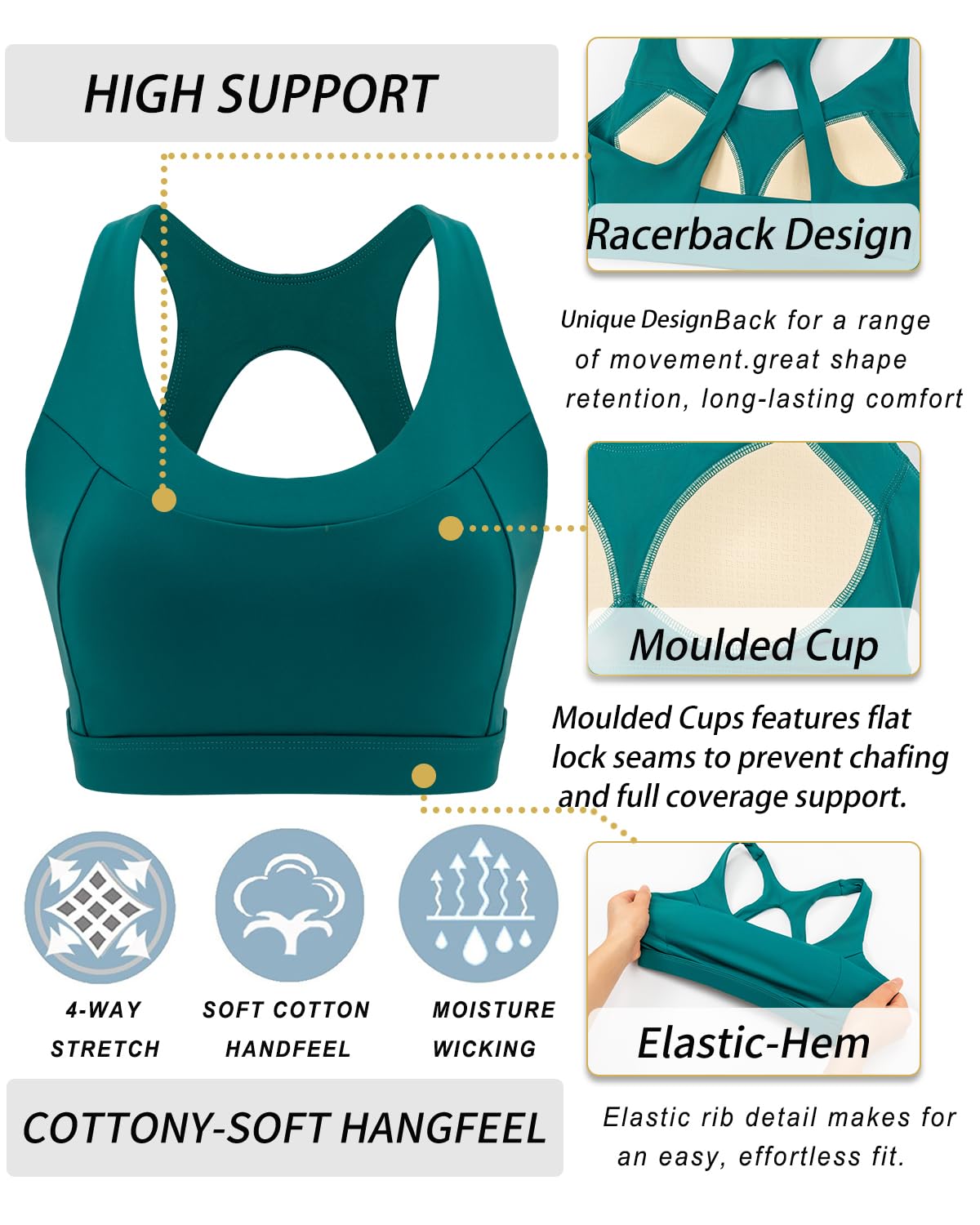 WHAT CAN WE OFFER YOU:Moisture-wicking Technology Metial Which Mean that You Can Enjoy Keeping Your Body Cool & Dry.Super Soft Elastic Band for Comfort & Movement Which Will Allow You Can Enjoy Sinking into Your Practice without Sacrificing Comfort. Built for High-Impact Support so You Will Get Staying Fit & Focused.We Wear-tested by Our In-house Team for the Perfect Fit,Goodbye Old Bra!!