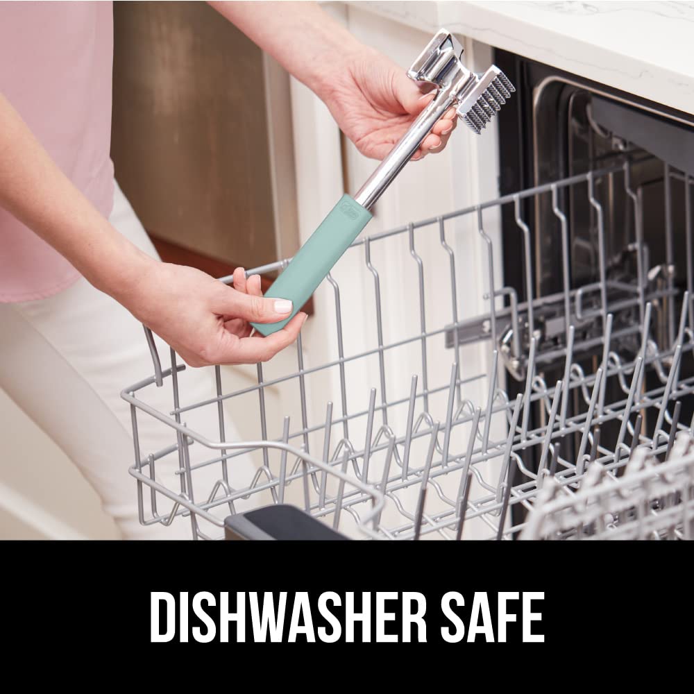 BPA FREE, FOOD GRADE AND DISHWASHER SAFE: meat tenderizer tool is food grade and tested to be safe for direct contact with foods; use for nearly any recipe, from thick cuts of steak, to chicken, to even vegetables; crush up garlic and ginger, and even make mashed potatoes; dishwasher safe for an easy clean every time; wash before first use