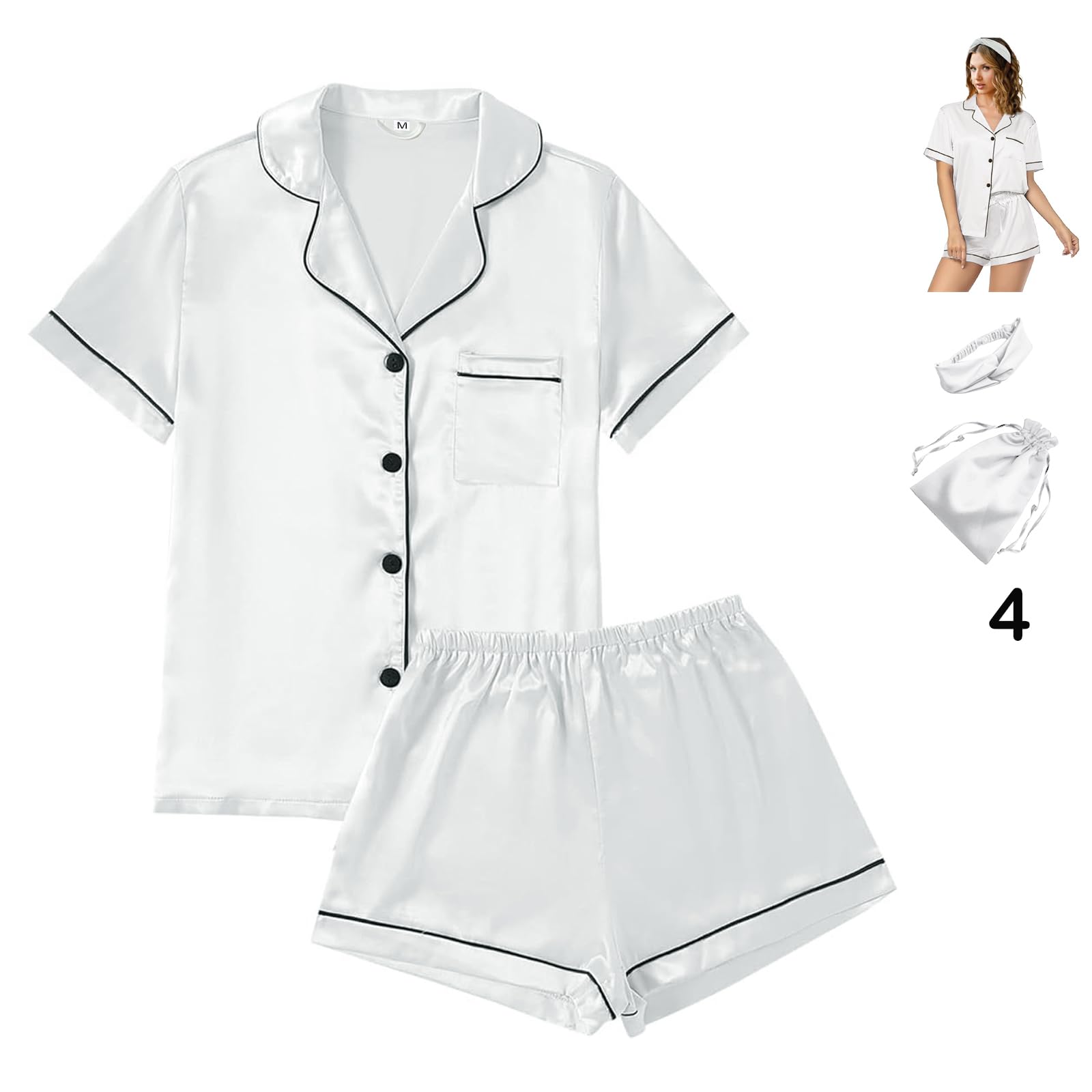 Perfect Combination-PLEASE NOTE the package contains:1xShort Sleeves Top, 1xShorts,1xHeadband, 1xPouch Bag =TOTAL 4PCS PER PACK. “W” = Piping in WHITE; “B” = Piping in BLACK. "A04"=Floral Pattern1.Also 8 SIZE RANGES: XS-S-M-L-XL-XXL-3XL-4XL.Please check carefully before order! This Womens Satin Pajama set shorts silk pajamas sets Pjs set sleepwear Pj sets Loungewear with headband + Pouch Bag has sufficient quantity and elegant soft quality to satisfy the needs of you.