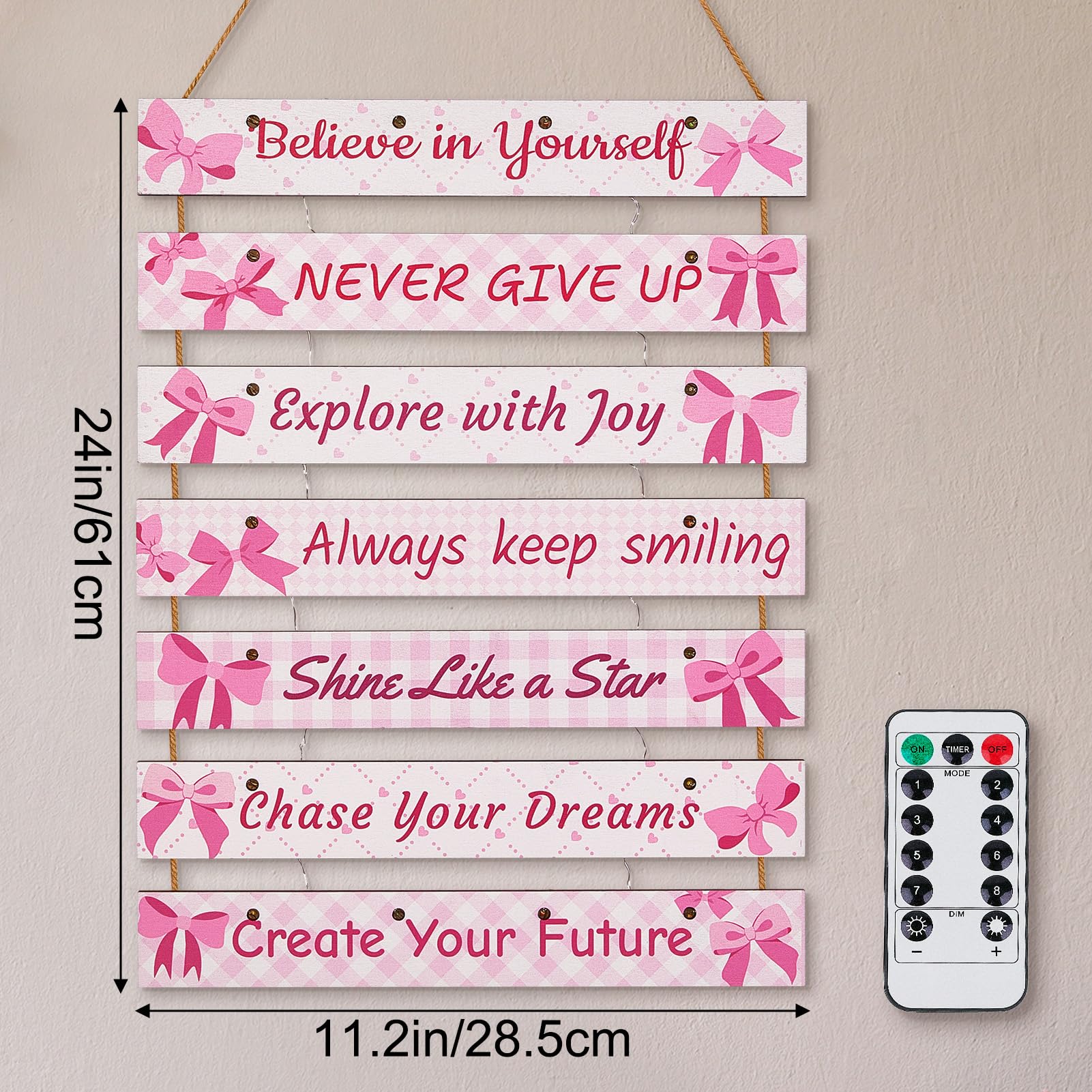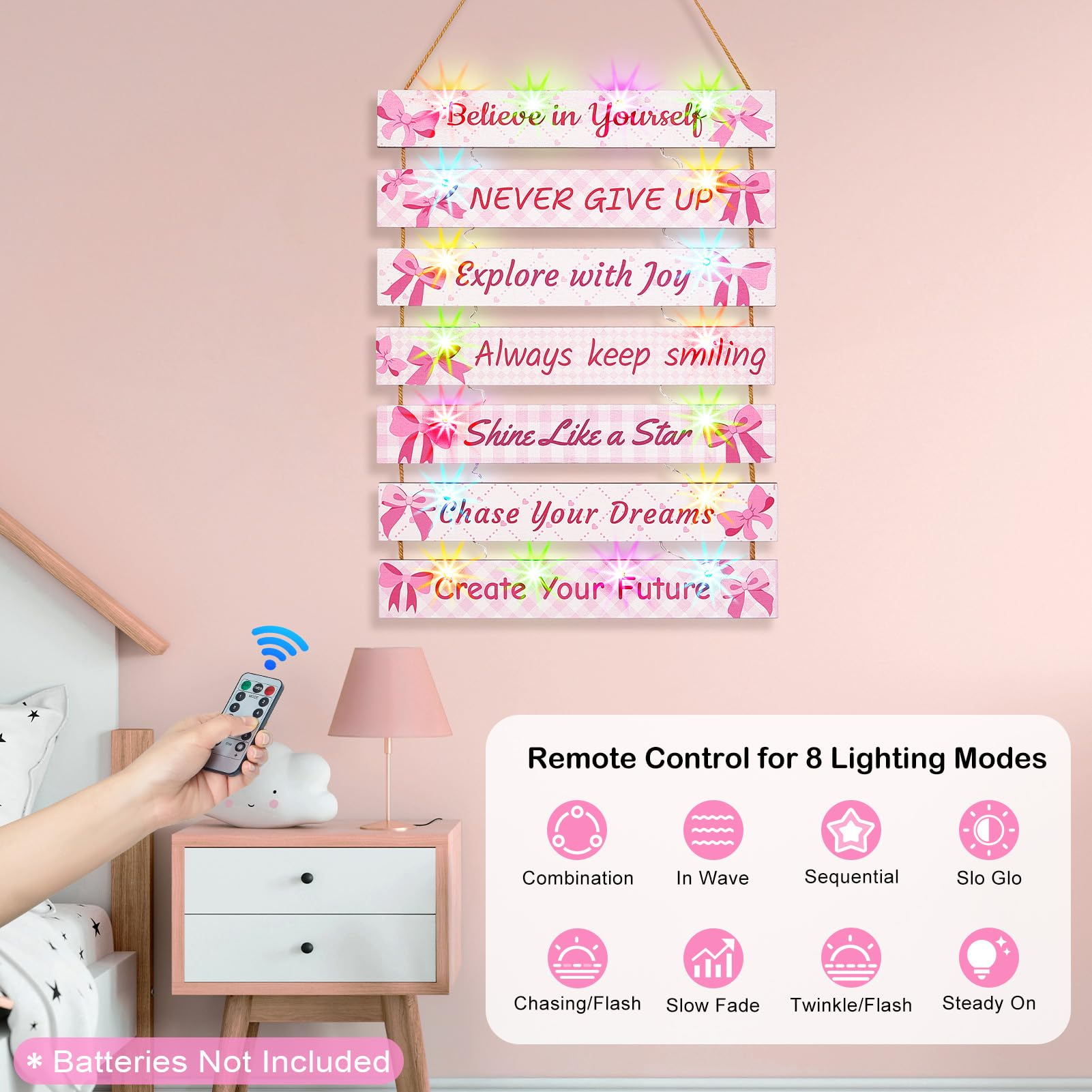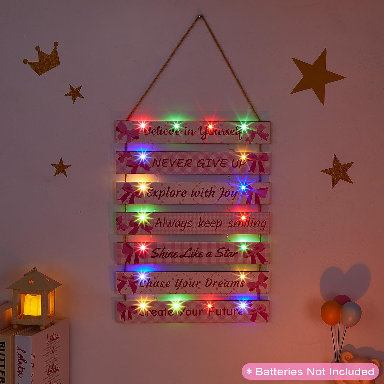 Package: The play room decor for kids package includeds 1 pcs girls room decor board, 1 pcs LED light with empty battery box (not including batteries), 1 pcs remote control (not including batteries), both do not including batteries, need to be purchased by customers themselves