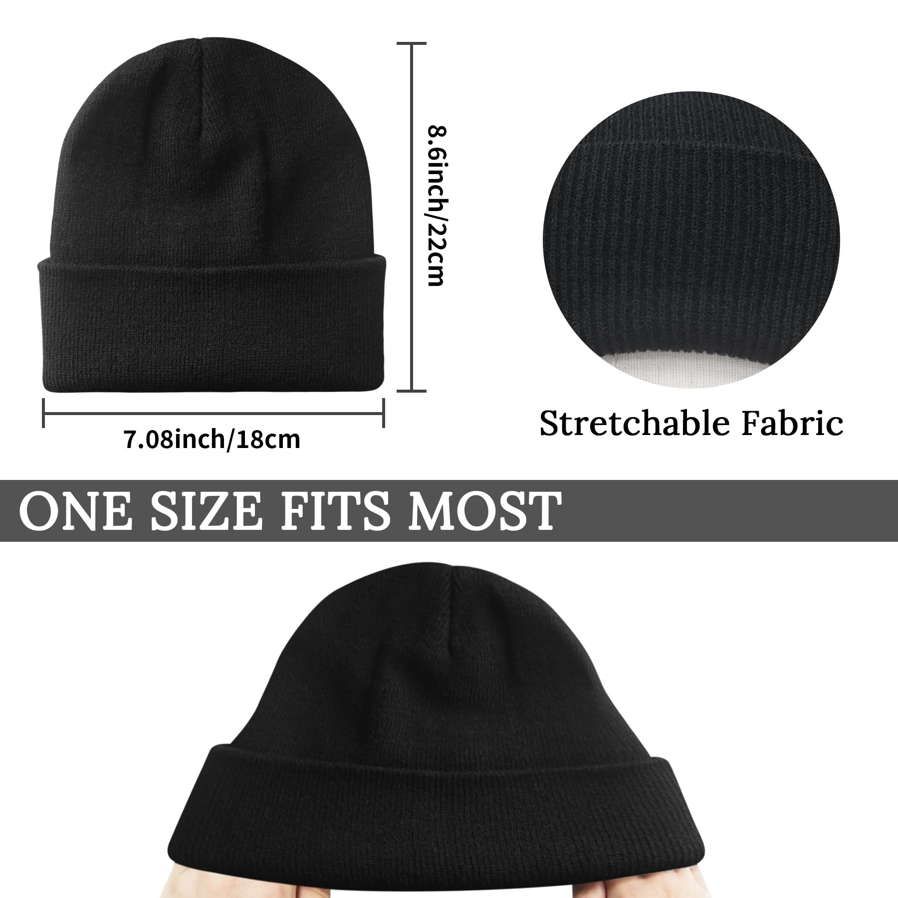 HIGH-QUALITY MATERIAL: Crafted from high-quality and stretchable fabric, the classic knit soft beanie can providie a snug fit, ensure longtime use and add a stylish touch to your outfit