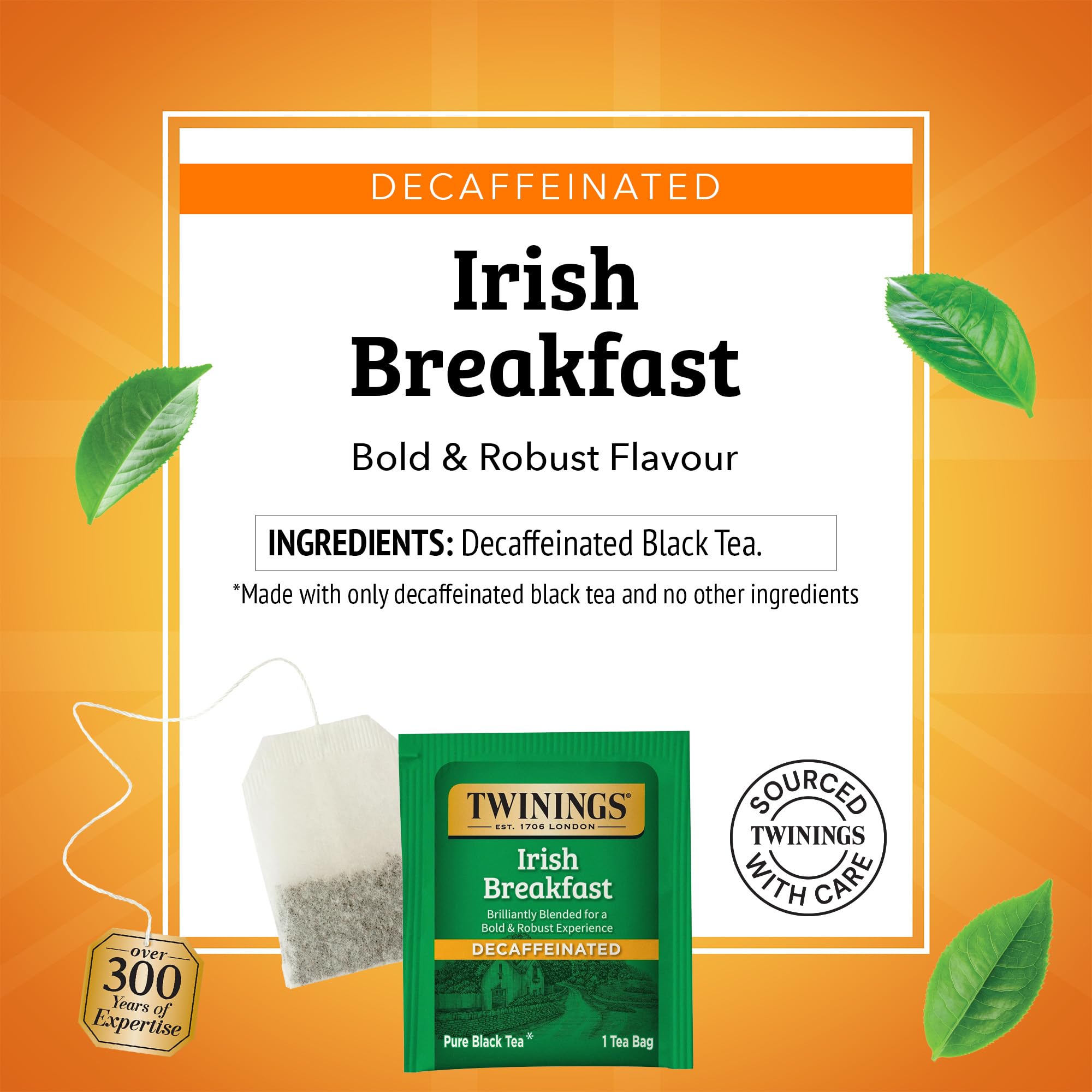 TWININGS TRIBUTE TO THE IRISH: We've created a bold, rich tea blend that symbolized the Irish love of hearty black tea; Leaves from four regions for added body flavour and strength; Decaffeinated, 20 Count, Pack of 1