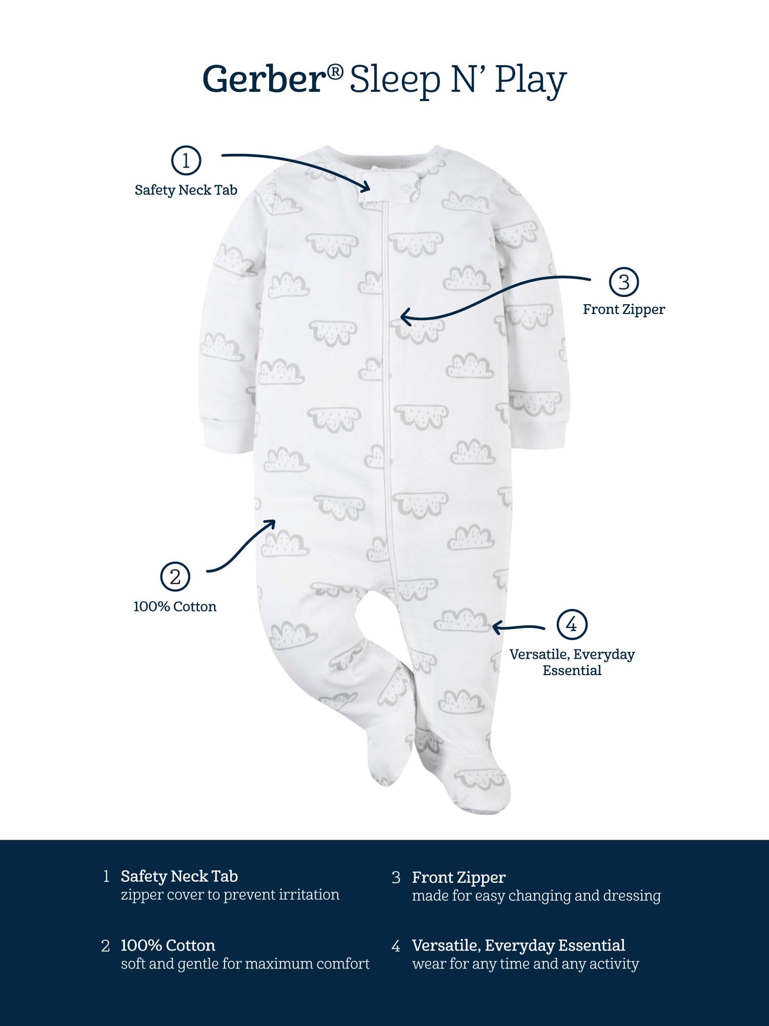 ZIP FRONT FOR EASY CHANGES – A convenient front zipper closure allows for quick diaper changes and easy dressing, making these zipper sleep ‘n plays practical for busy days and overnight changes.