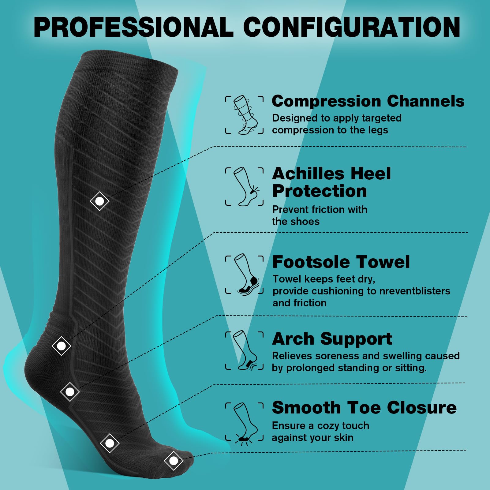 Vibration Damping:Maximize performance with our advanced compression socks. They offer enhanced arch support, soft padding, and a buffering vibration damping system for maximum comfort, protection against overuse injuries, and effective support. With a robust construction, these professional-grade socks are built to elevate your game.