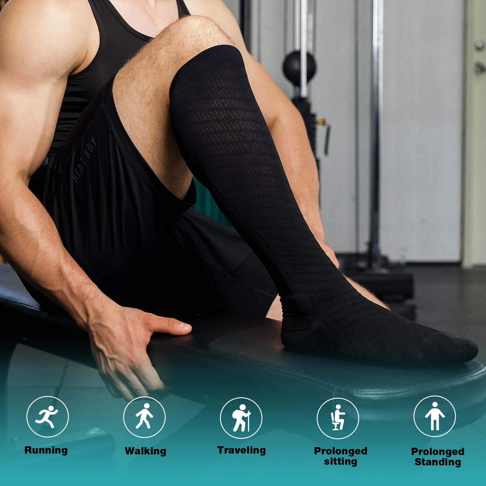 V-Compression:Our compression socks leverage a V-shaped progressive compression technology, significantly lowering pressure from the knee down, keeping a steady 20~30mmHg range. This design provides a gentle massage from the ankle to the calf, promoting optimal blood circulation and reducing swelling.