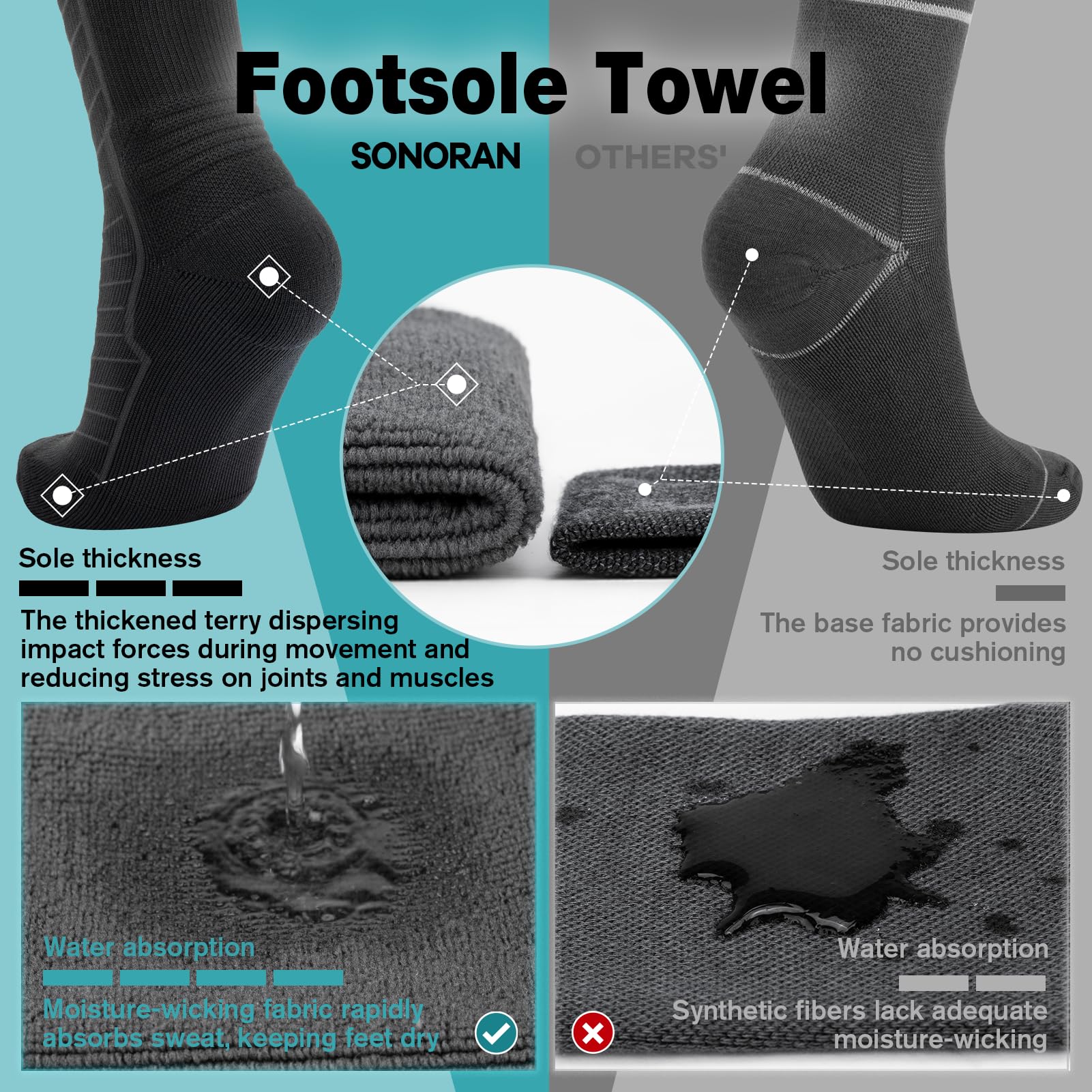 Protection:Our socks also provide exceptional Achilles protection, effectively reducing heel friction. The included footsole towel protection system using a unique weave quickly absorbs sweat, ensuring dry feet and minimizing slip during various activities.