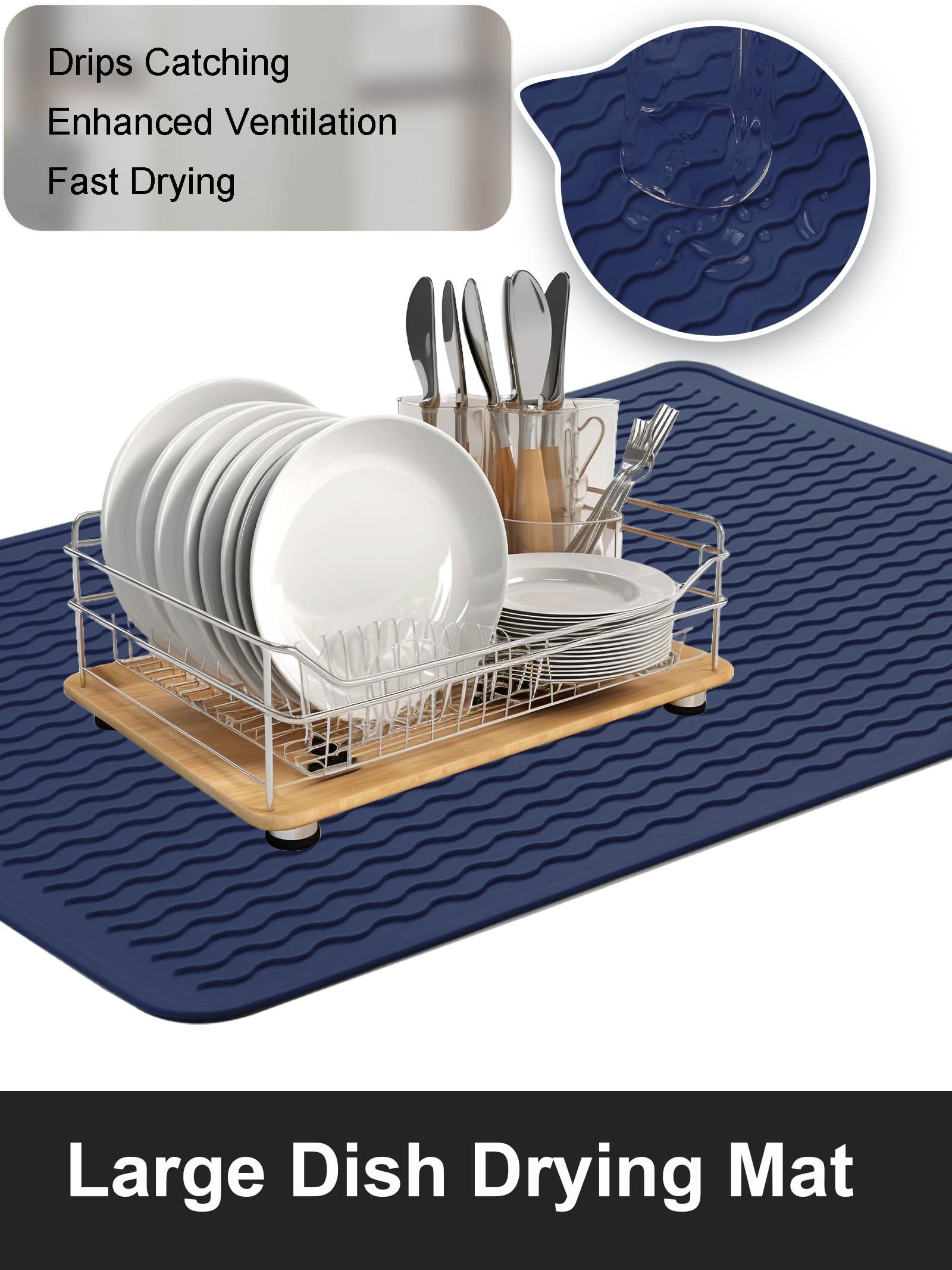 [Dish Drying Mat] This uniquely designed wave ridge can enhance air circulation for improved ventilation while capturing drips from dishes, glasses, fruits, and veggies. Its high edges and waterproof bottom prevent spills, keeping countertops dry and pristine, making it the perfect kitchen drying mat.