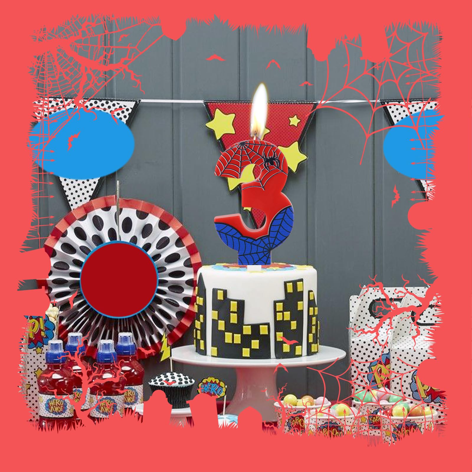 🕷【Cake Candle Information 】:You'll get 1pcs number 0 numeral candle.The birthday candle 1 cake topper is 1.37 inches/3.5cm wide and 3.7 inch/9.5cm high,proper size as cake topper decoration for most boys girls Spiderman Themed birthday cake.