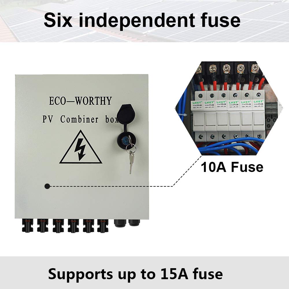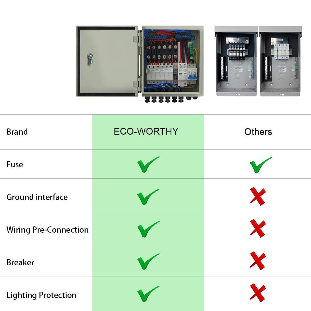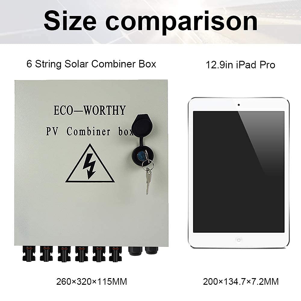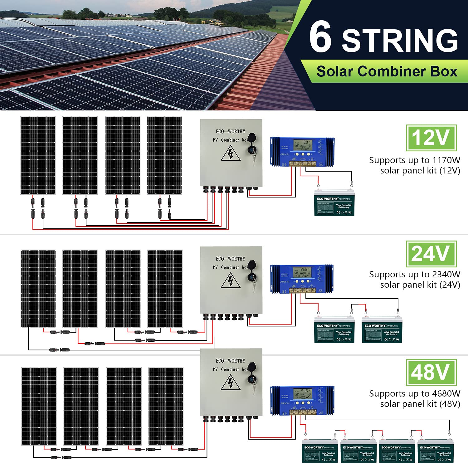 ECO-WORTHY 6 String PV Combiner Box(Metal Case) & 63A Circuit Breakers for Solar Panels