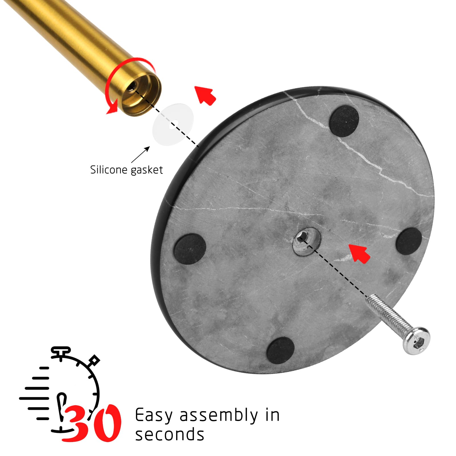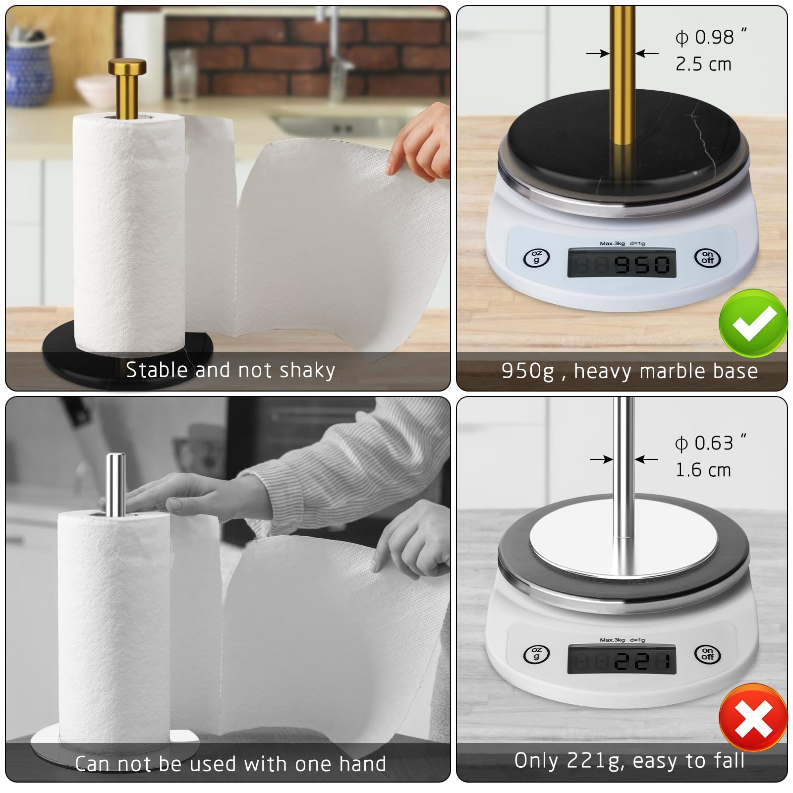 VERSATILITY: We also put 4 non-slip pads on the bottom to prevent the paper towel holder shelf from shifting. The padded bottom will keep your table from getting scratched.Our paper towel bars come in different marble bases, and different metal bars, so you can best match the style of your home.