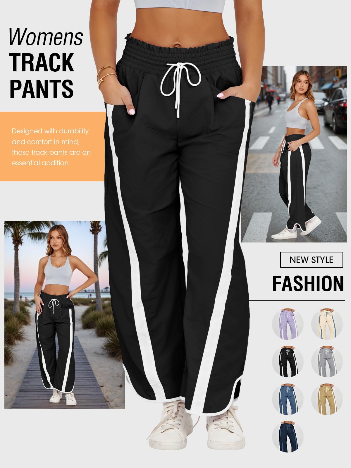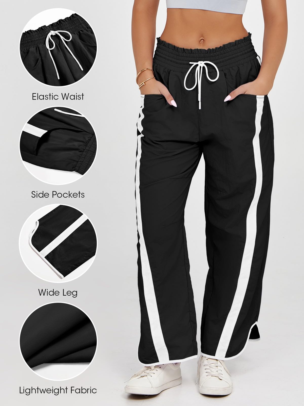 WHAT MATERIAL: Crafted from 100% polyamide, these parachute pants offer exceptional durability and flexibility. The smooth fabric is both lightweight and breathable, ensuring comfort and ease of movement