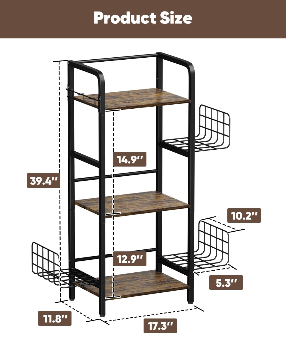 Keep Your Handbags, Purses Tidy & Within Reach! Upgrade your storage with our iron - wood floor-standing 3-tier purse rack, designed to hold your favorite purses, hats, scarves, and more. The combination of robust iron frames and smooth wooden shelves ensures durability while blending seamlessly with modern or industrial decor. Why Choose Tuohours Purse Organizer Rack? Adjustable Feet: Customize stability on any floor surface. Breathable Open Design: Prevents moisture buildup and keeps items fresh. Space-Saving: Fits snugly in corners or along walls. Multi-Use: Ideal for stores, boutiques, or home organization. Specifications: Material: Durable metal + wood Finish Type: Powder coated Mounting Type: Floor Mount Product Size: 11.8’’ D x 17.3’’ W x 39.4’’ H Ideal for Placement in: Bedrooms, living room, entryways, and other versatile spaces. All-in-One Organizer: Perfect for closet, pocketbook, handbag, bags, shopping bags, backpack, storage bins, scarves, hats, clothes, and more.