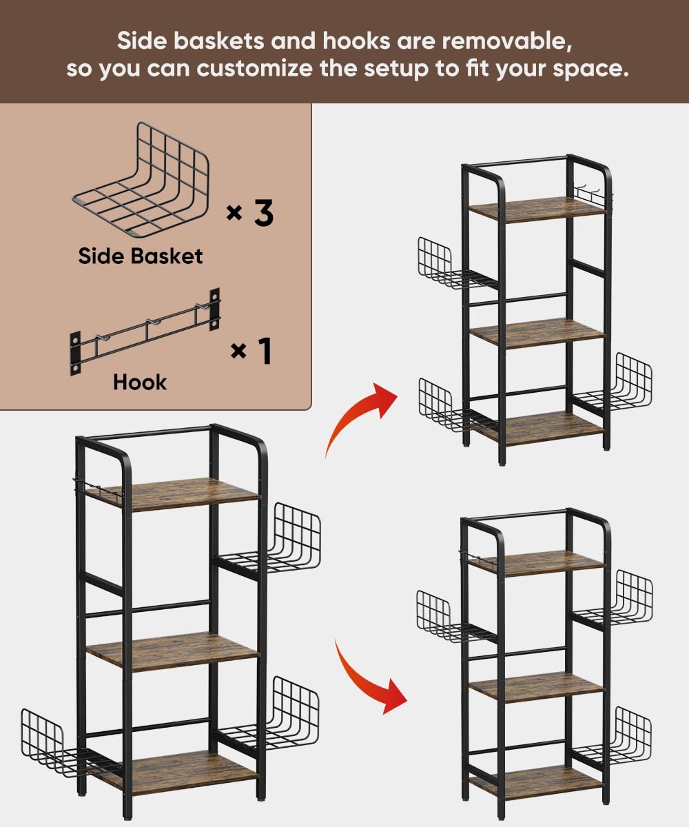 Large Capacity - 3 Hooks & 3 Side Baskets: This roomy purse organizer hanger measures 17.3" (W) × 39.4" (H) × 11.8" (D) and features 3 sturdy hooks + 3 reinforced side baskets, offering space for 20+ bags. Side baskets and hooks are removable, so you can customize the setup to fit your space.