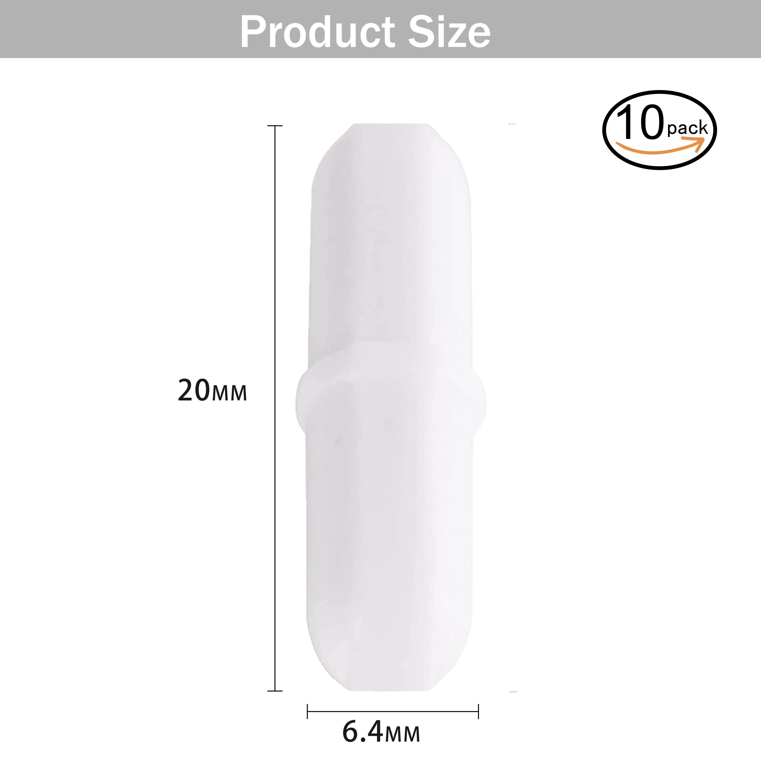 Package Included:Size: 6.4mm×20mm/0.8 inches. Quantity: 10 pieces, shape: cylinder with pivot ring shape