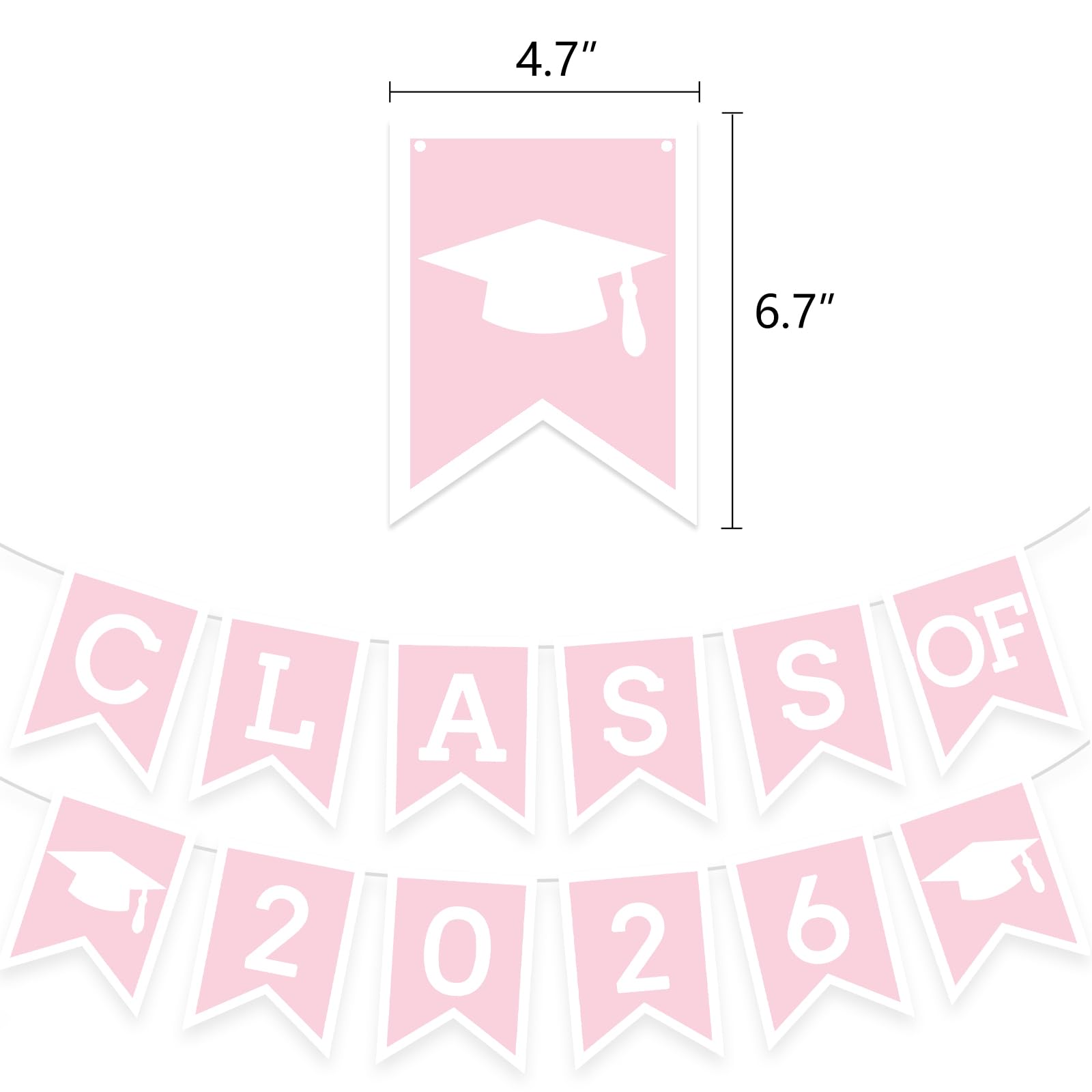 Class of grad party decoration! The pink and white graduation banner is made of paper, vibrant colors and easy to assemble. This graduation party set is the perfect collection to celebrate graduates achievement
