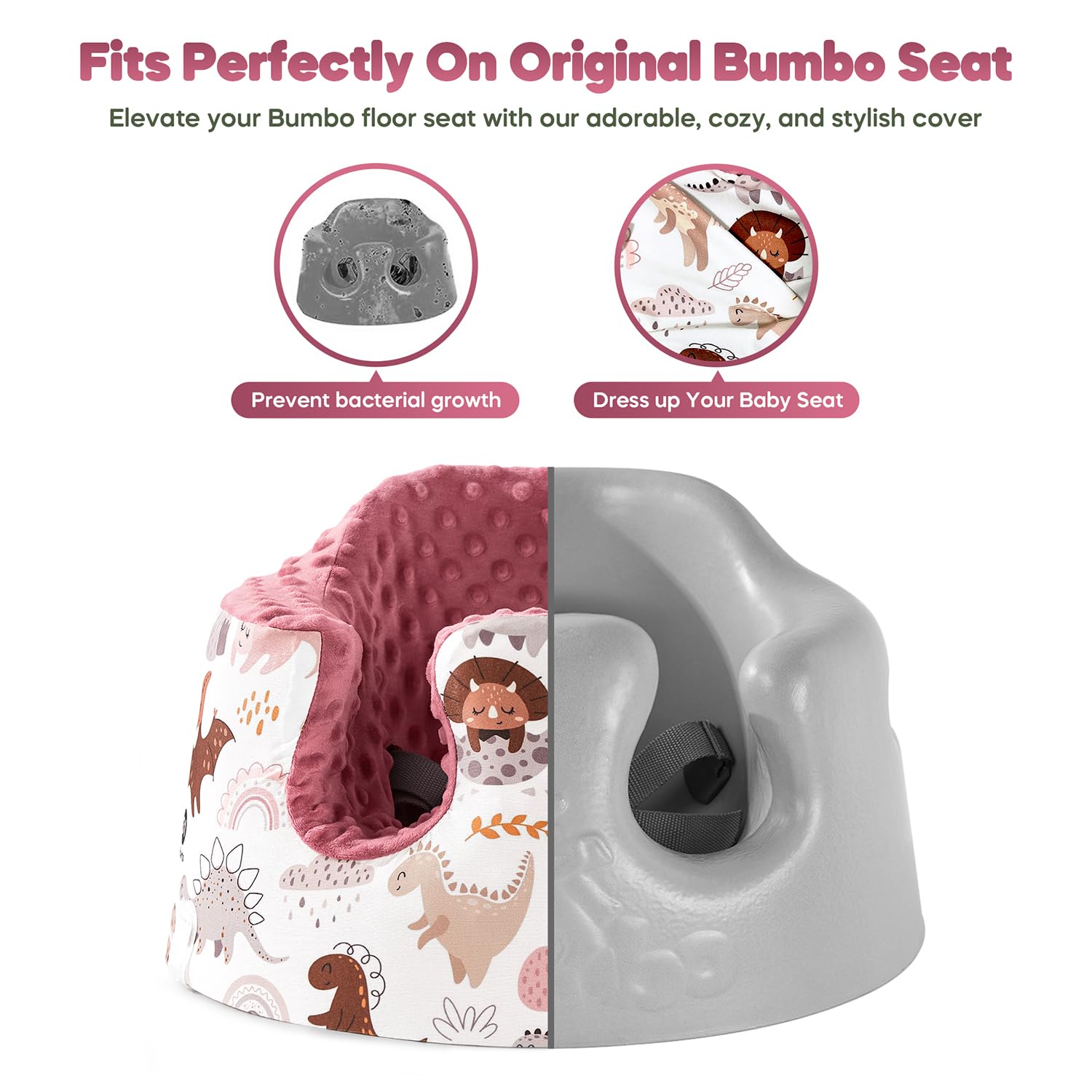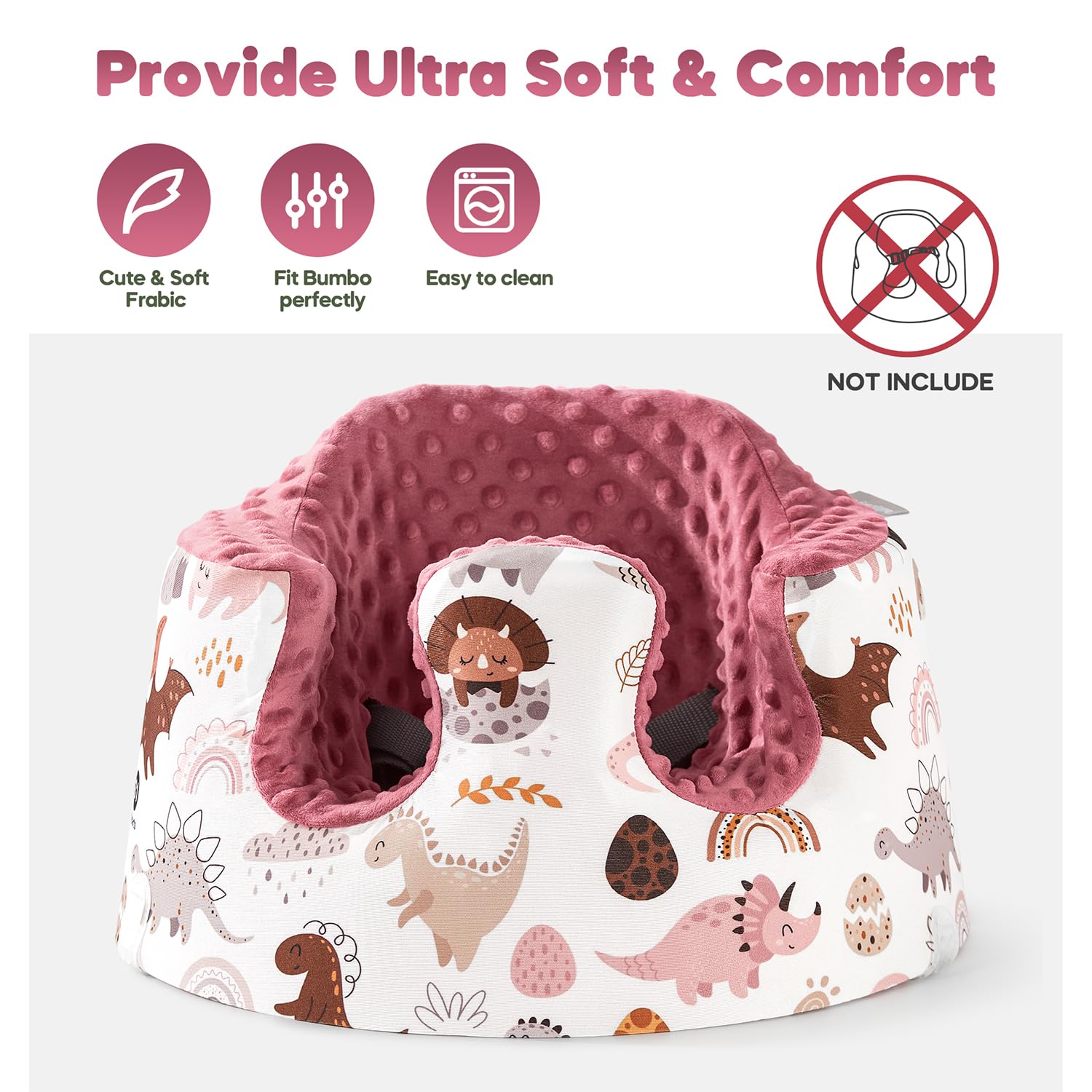 【Seat Cover Compatible with Bumbo Seat Only】The Seat Cover is Designed for Bumbo Seats;Put on Seat Cover, Soft and Comfortable for Your Baby; Covers Slide Over the Upper Part of the Seat, You Can Easily Dress and Undress the Bumbo Seat; The Bumbo Seat Cover is Easy to Wash, and your Bumbo remains fully functional