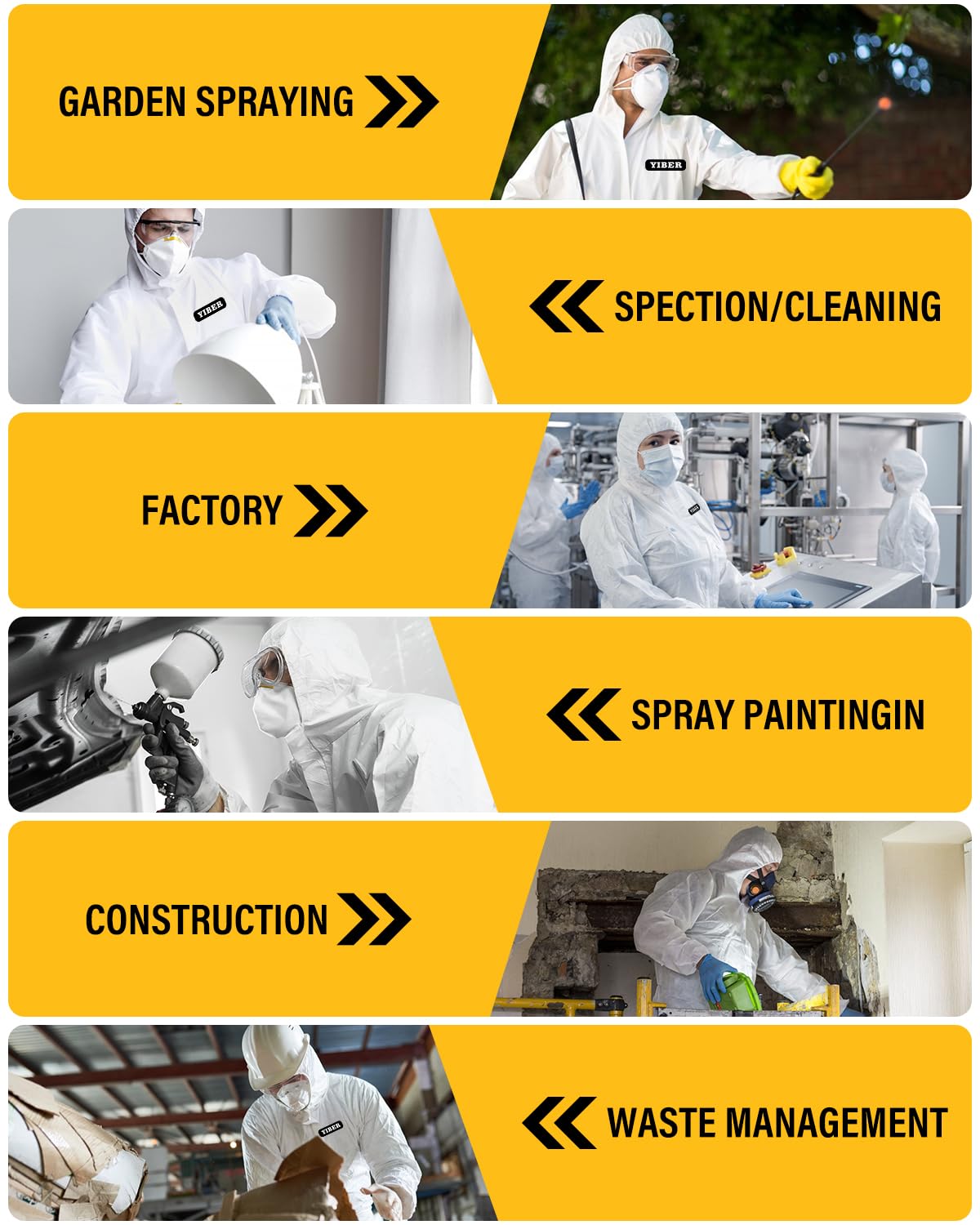 DISPOSABLE CONVENIENCE FOR WORKSITE | Say goodbye to heavy, expensive overalls that need cleaning! Our affordable personal protective coveralls offer excellent air permeability, water repellency, anti-static defense, and hygienic performance. They are ideal for people working around dust, fibers, harsh fumes, paints, varnishes, asbestos, waste, and pollutants.
