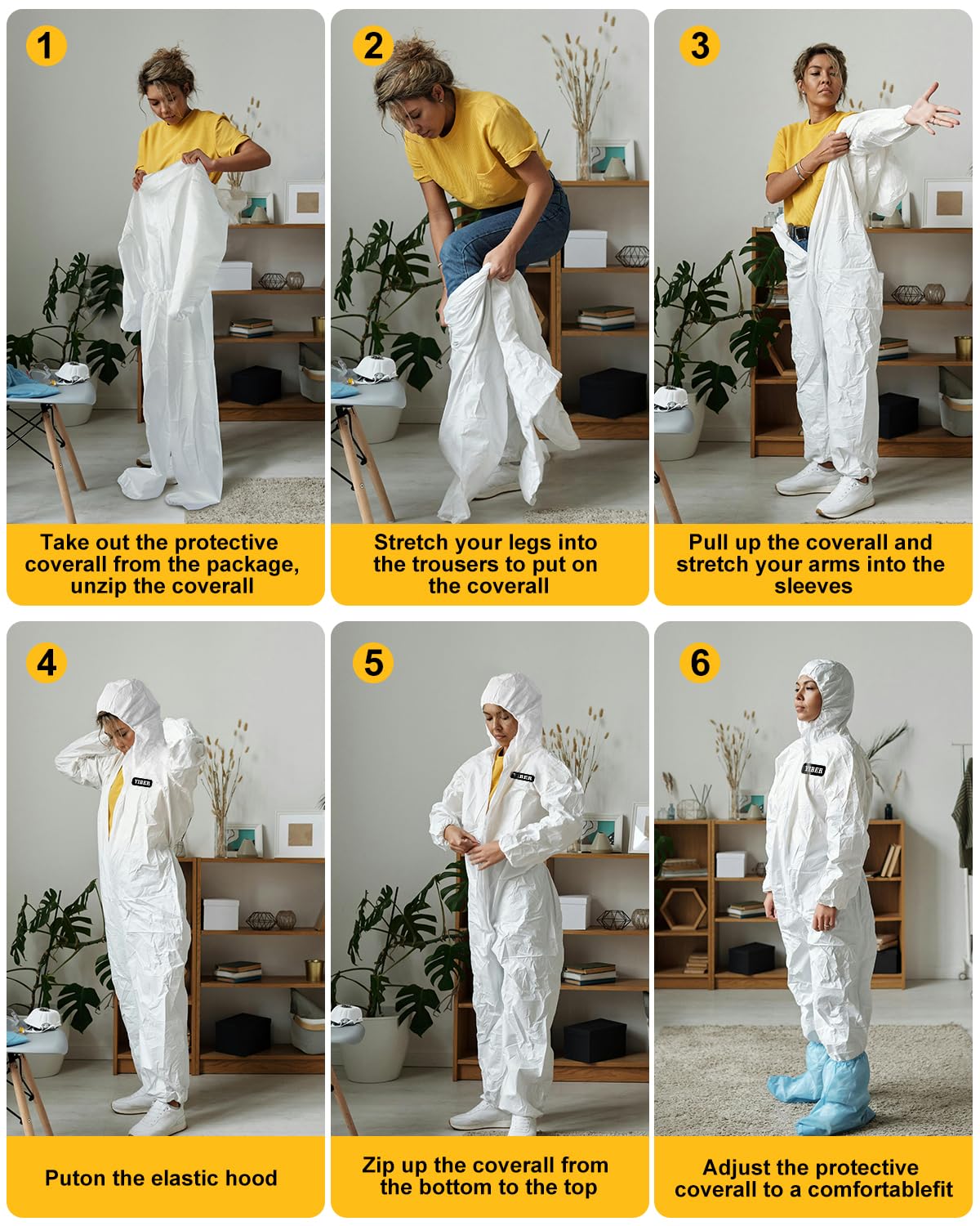 LONG SLEEVE, FULL BODY COVERAGE | This hazmat suit provides full-body coverage, blocking out dirt, dust, light liquid splashes, paint, and most mild chemicals and biological agents in all types of working environments. Our universal protective apparel covers the full length of the legs, arms, torso, neck, and head, shielding both skin and clothing. Just step inside and close the front zipper for instant wear.