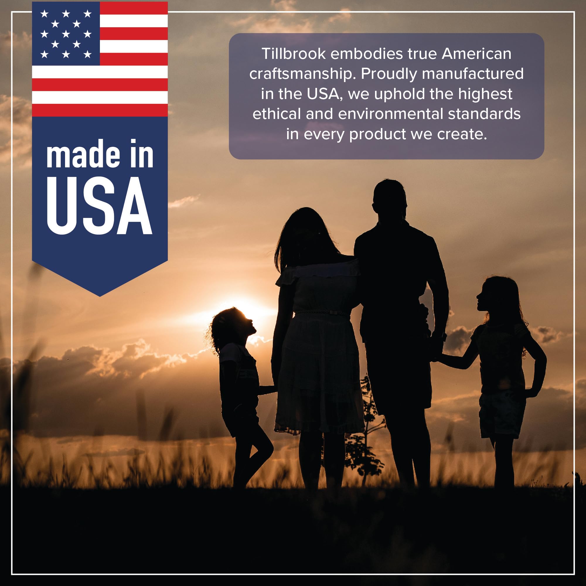 MADE IN THE USA: Tillbrook embodies true American craftsmanship. Proudly manufactured in the USA, we uphold the highest ethical and environmental standards in every product we create.