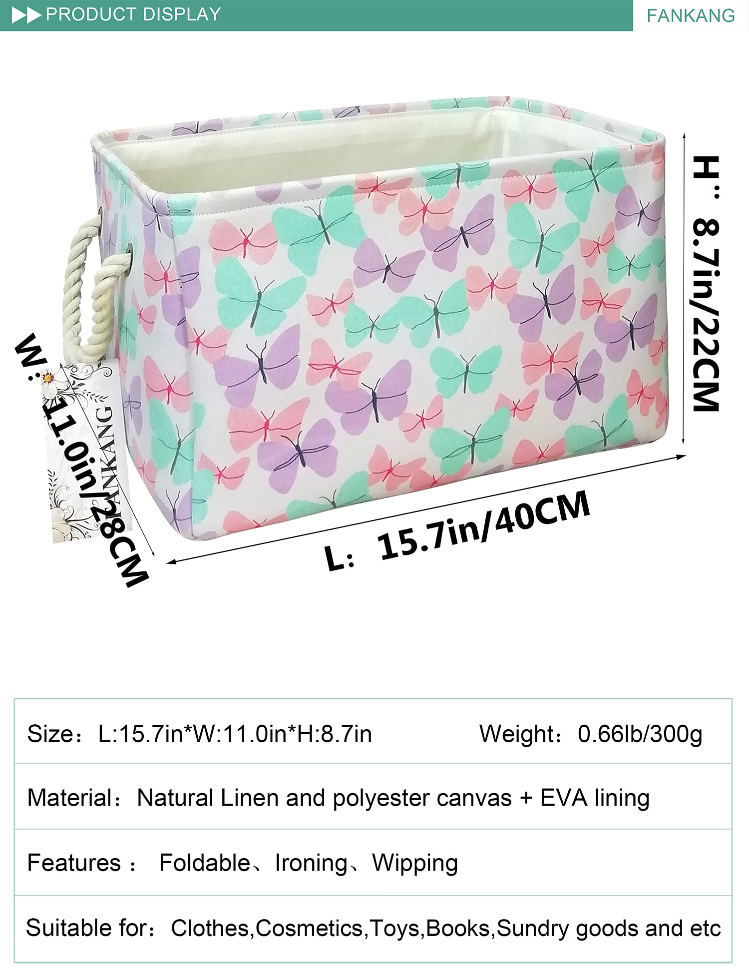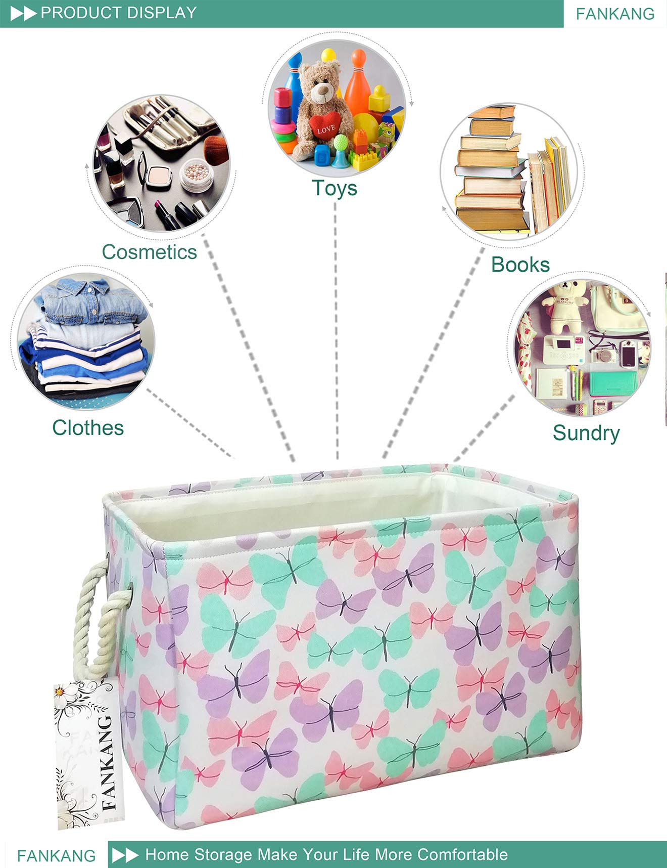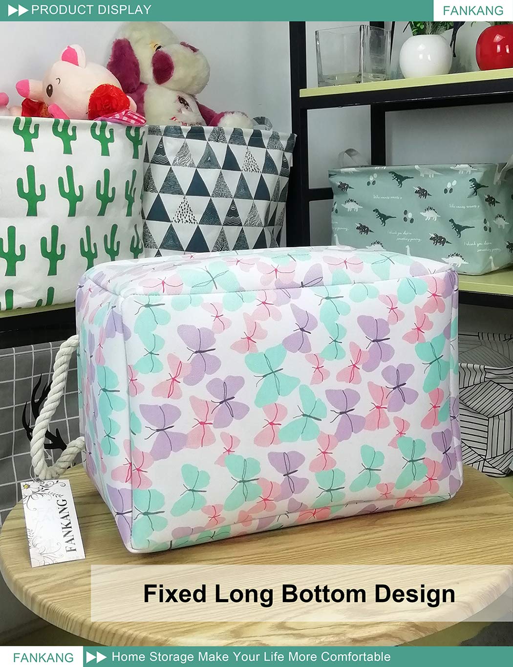 Easy to carry: The lightweight canvas storage bins with handles allow you to carry your load easier. Wire-rimmed edges add form and stability. Help your kids clean up their act with our cute storage bins.