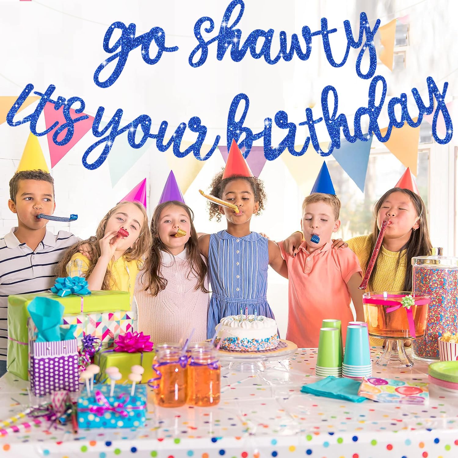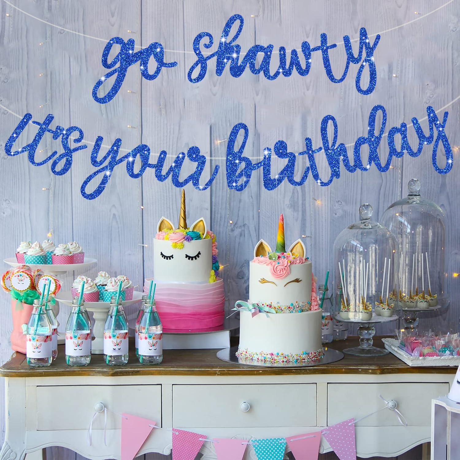 Product includes : A Blue Glitter NO DIY Go Shawty It's Your Birthday Banner is included in our product. It is a very convenient birthday banner that can save your time and decorate your birthday party very well.