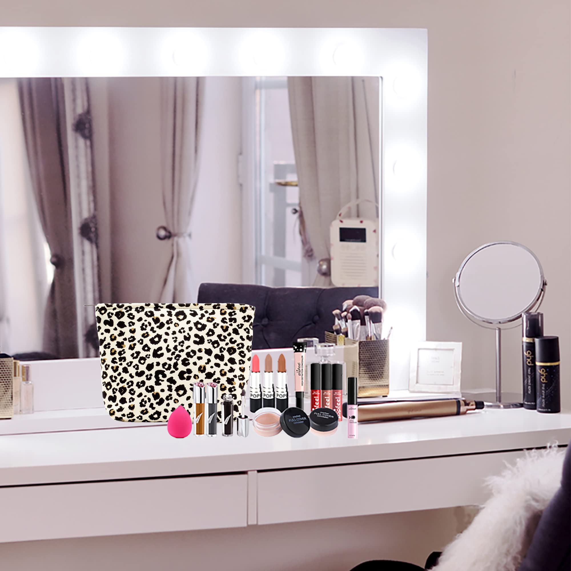 Multi-Purpose:Use this sturdy pouch to easily pack and carry makeup,jewelry,beauty items,brushes,pencils,small electronic accessories,toiletries,essential oils,medcine,tools or other travel essentials.This cosmetic pouch is the perfect balance between funchtion and style.