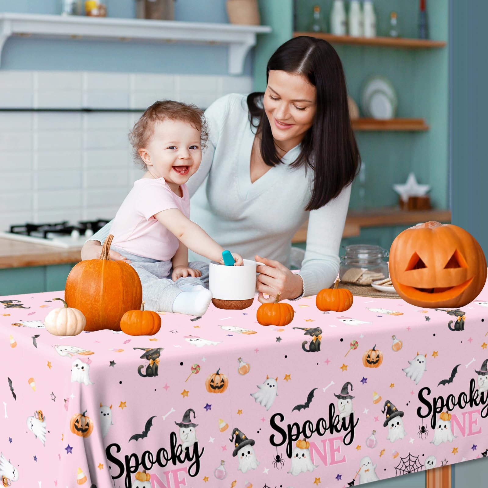 Premium Material: The Halloween plastic tablecloth is made of waterproof plastic, keeping your table from stains caused by food, drink and more. You can use this baby shower tablecloth to protect your table and celebrate spooky one birthday for girl at the same time