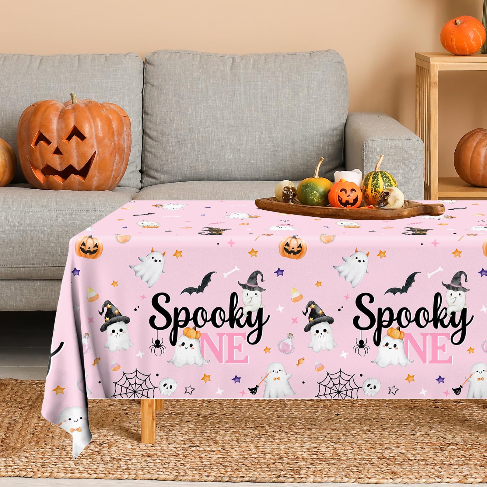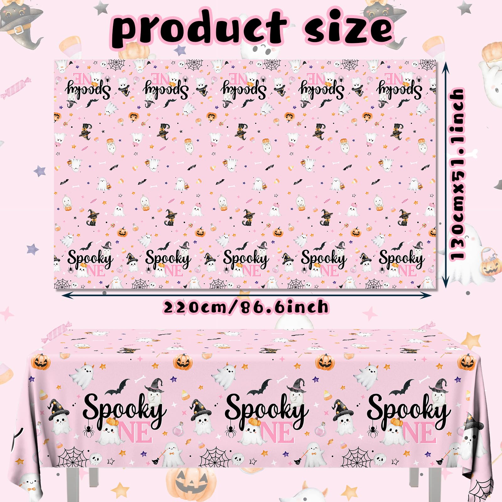 Halloween Spooky Design: This spooky one birthday table cloth set is designed in pink color, with the words "spooky one" printed on it. The disposable plastic table cloths can make your girl baby shower party full of the atmosphere. Made cute and fun with pink, it makes a girl's first birthday even more extra special