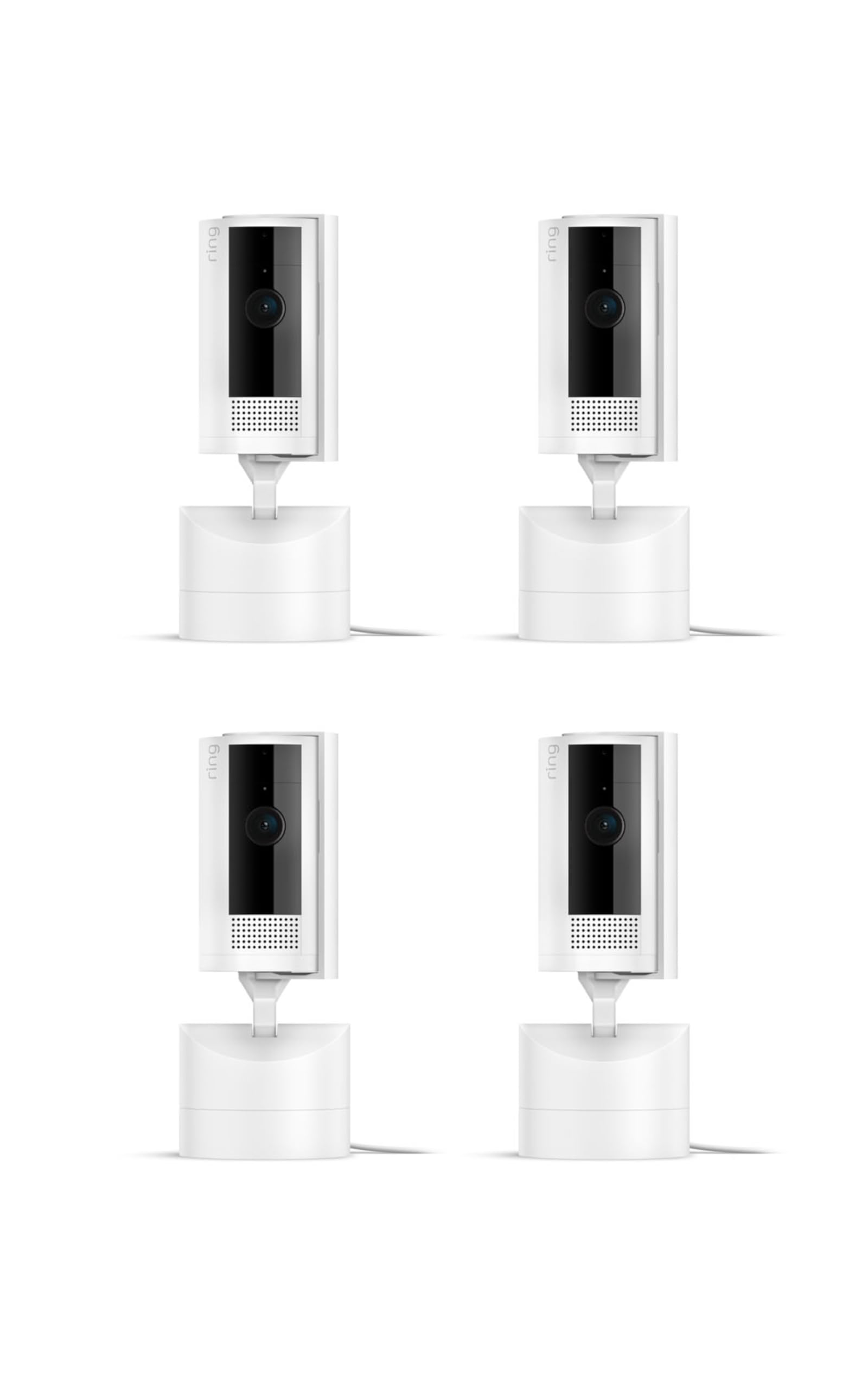 This bundle contains four Ring Pan-Tilt Indoor Cams (White).