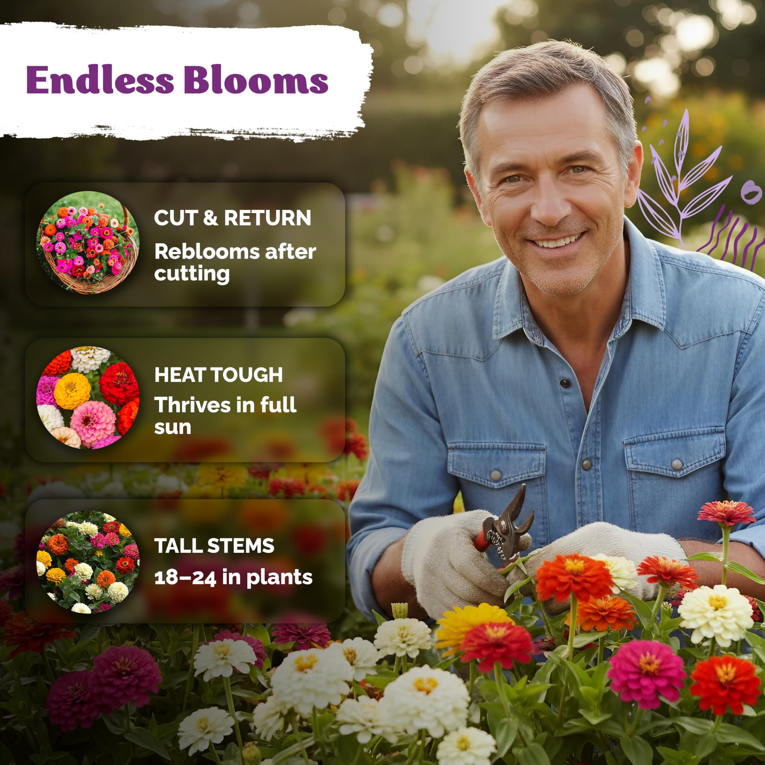 Pollinator Magnet: Heirloom zinnia seeds lure bees, butterflies, hummingbirds beyond any pollinator seed mix, while deer and rabbits avoid 2 ft plants, keeping upkeep light for busy gardeners.